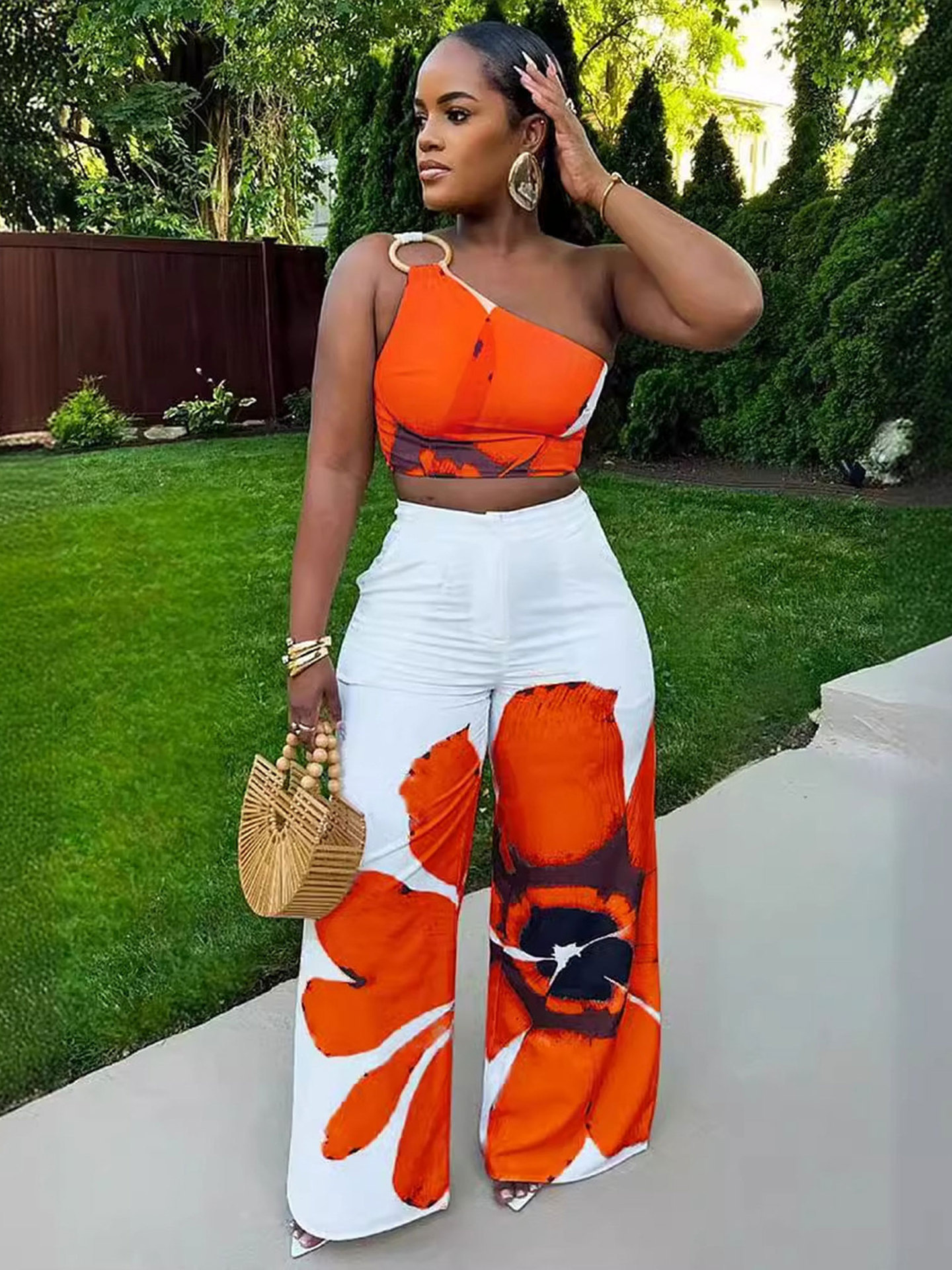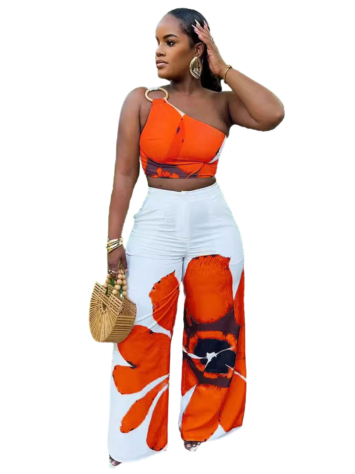 Главная страница > D9738 Amazon Европа и США Горячая женская мода сексуальная цветочная принт на одно плечо стройные широкие брюки из двух частей