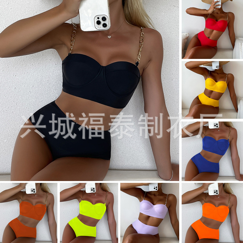 Подтяжки с металлической цепочкой, сексуальный стальной кронштейн, сборный раздельный купальник, женское бикини, трансграничное Европейское и американское экспортное оптом Amazon