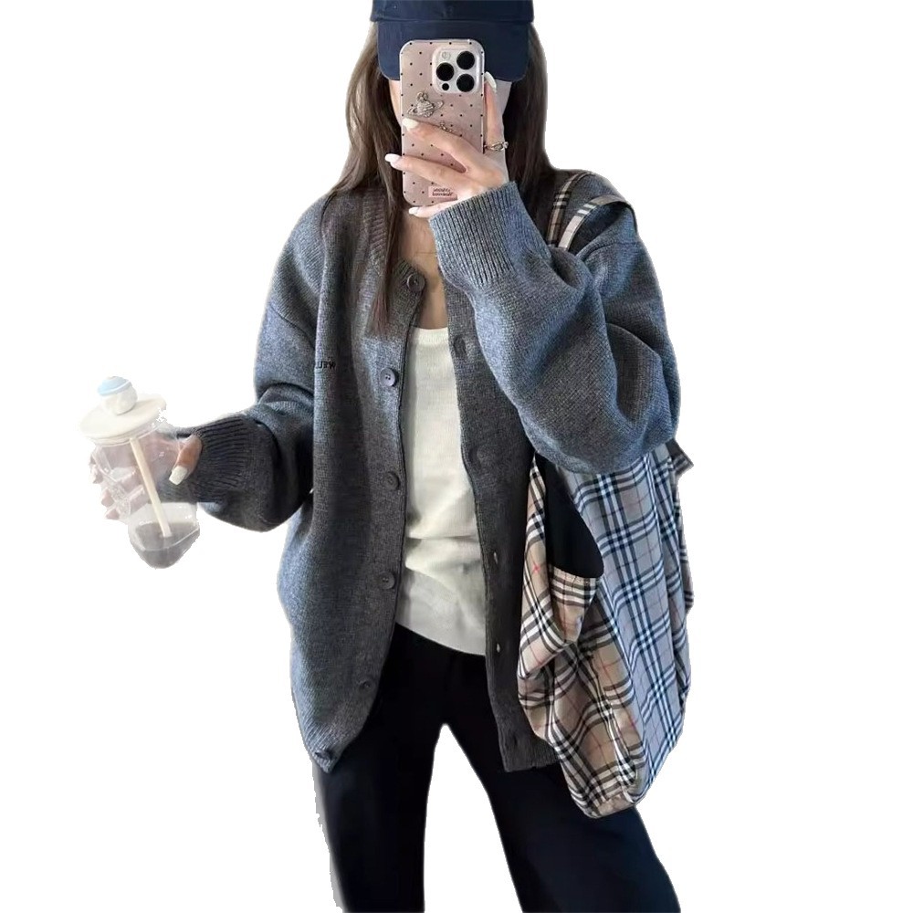 Главная страница > Однотонный вязаный кардиган для женщин, осенний новый свободный ленивый стиль, повседневный высококачественный верхний свитер, куртка, топ для женщин