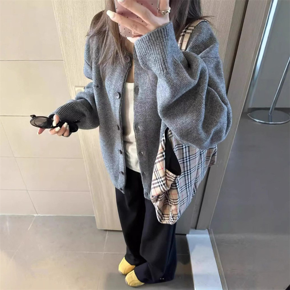 Однотонный вязаный кардиган для женщин, осенний новый свободный ленивый стиль, повседневный высококачественный верхний свитер, куртка, топ для женщин