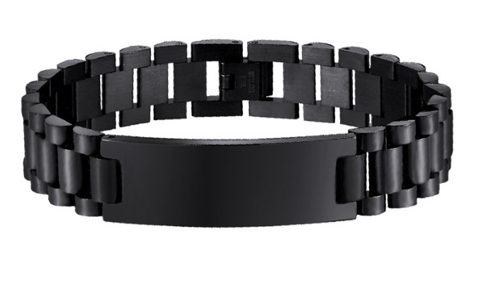 В наличии Amazon Мужская мода черный серебристый золотой браслет с надписью из титановой стали поколение волос