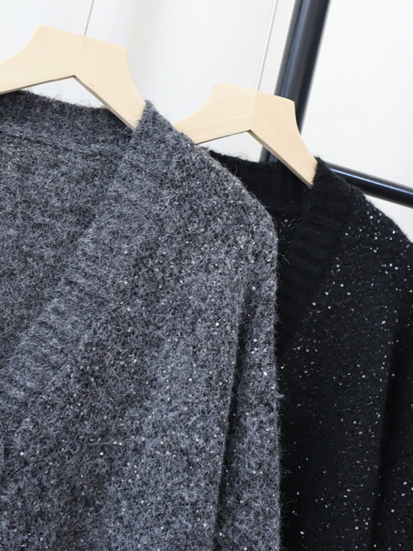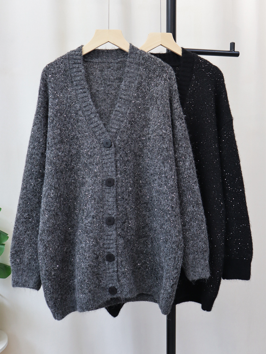 Главная страница > Женский кардиган-свитер оверсайз из трикотажа с пайетками в корейском стиле, средней длины, осенне-зимний, повседневный, универсальный, 2025