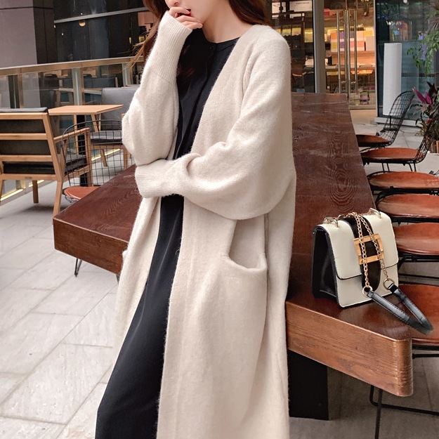 Главная страница > Свитер женский новый 2023 осень-зима Универсальная Свободная верхняя одежда средней длины Верхняя одежда Утолщенный вязаный кардиган-куртка