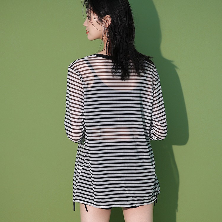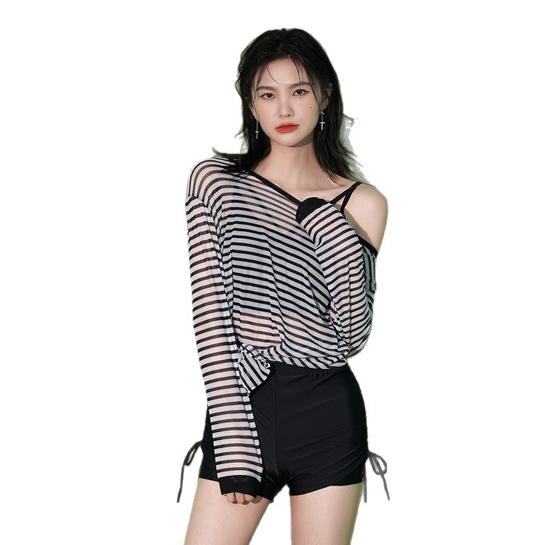 Главная страница > Раздельный купальник-тройка, Женская Солнцезащитная блузка с длинными рукавами, боксер, полосатый консервативный пловец для похудения с горячими источниками