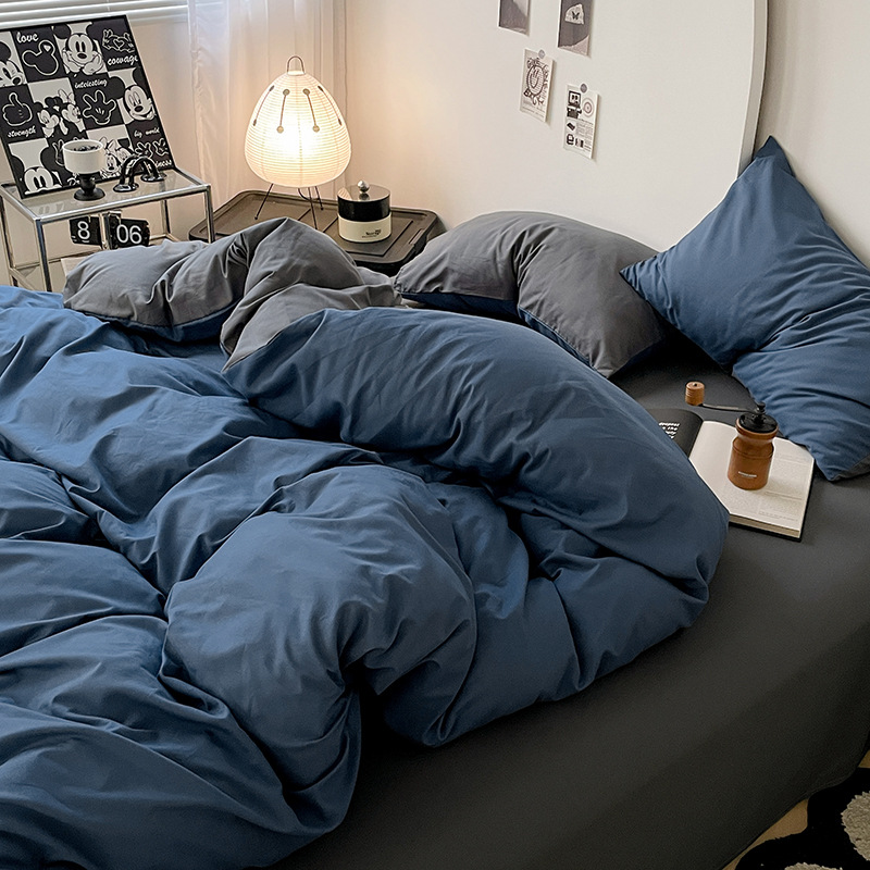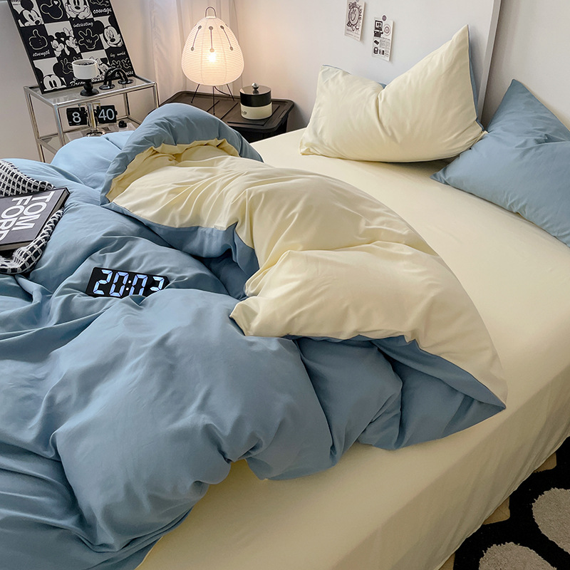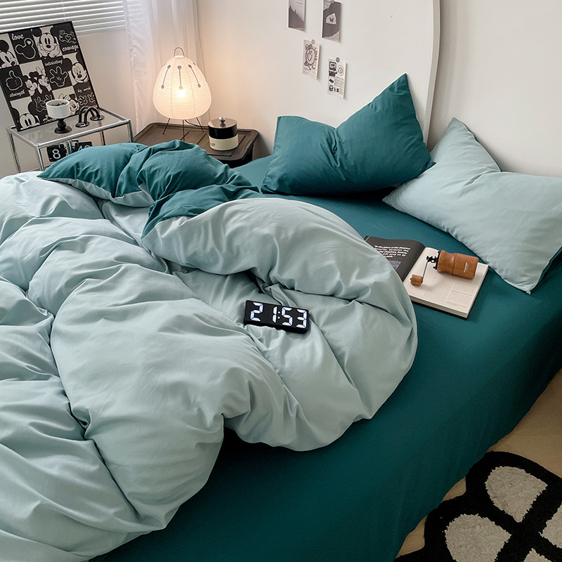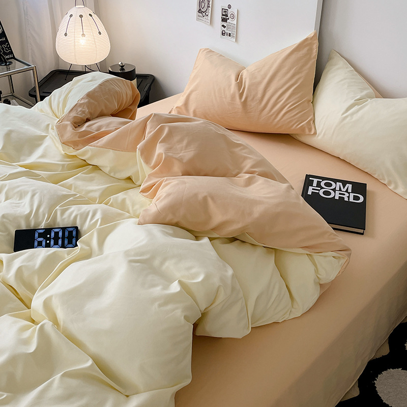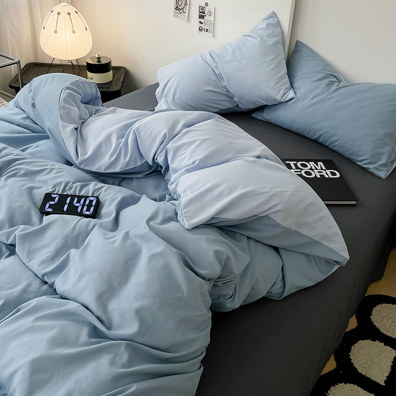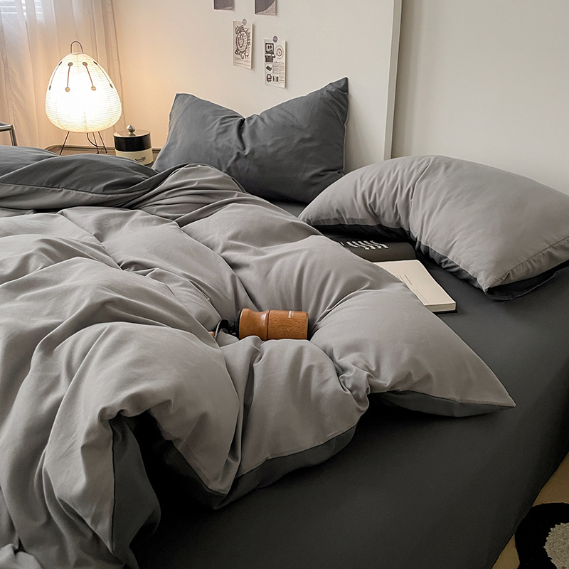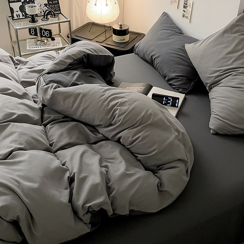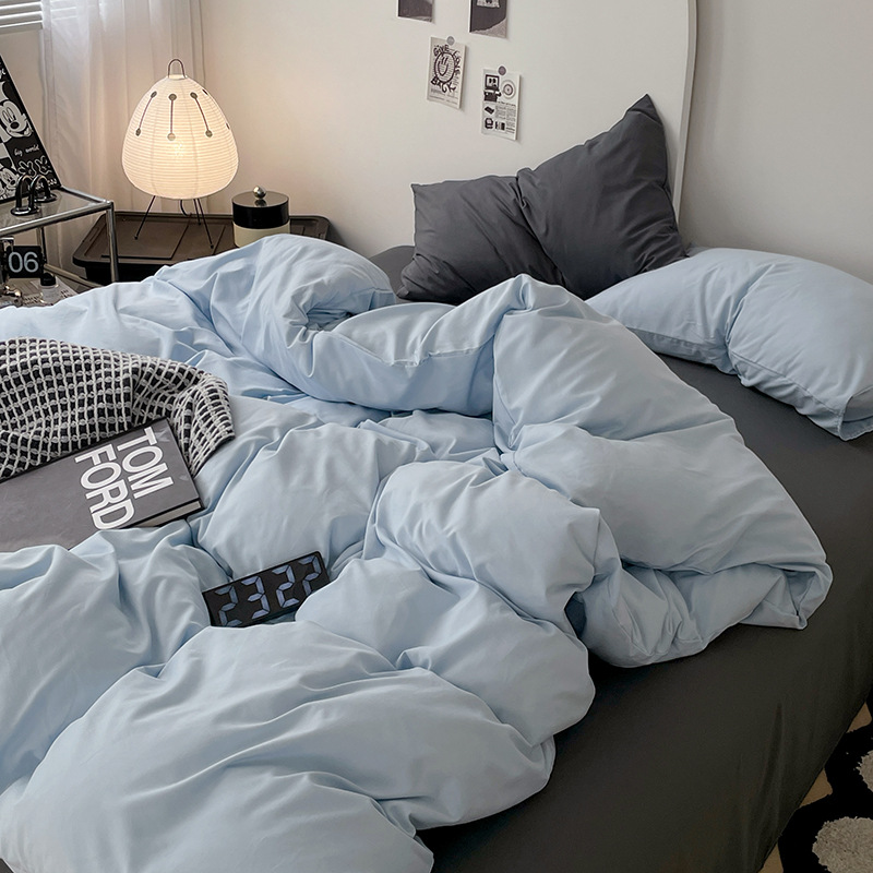 Главная страница > Комплект постельного белья в стиле минимализм из четырех предметов, свежий и простой однотонный комплект из стираного хлопка: простыня, пододеяльник, комплект из трех предметов для студенческого общежития
