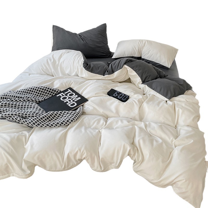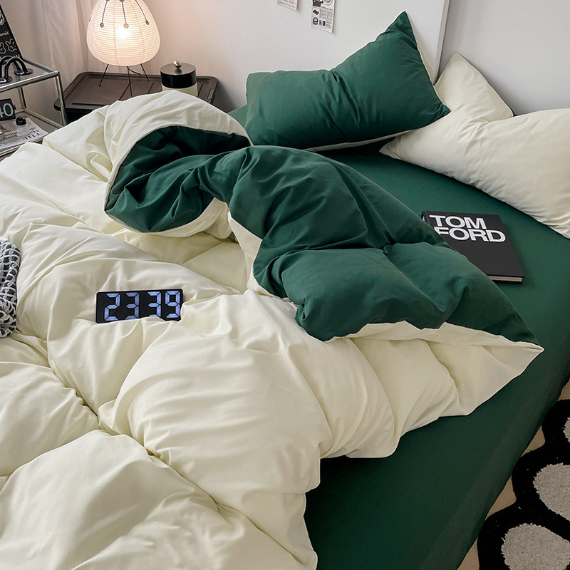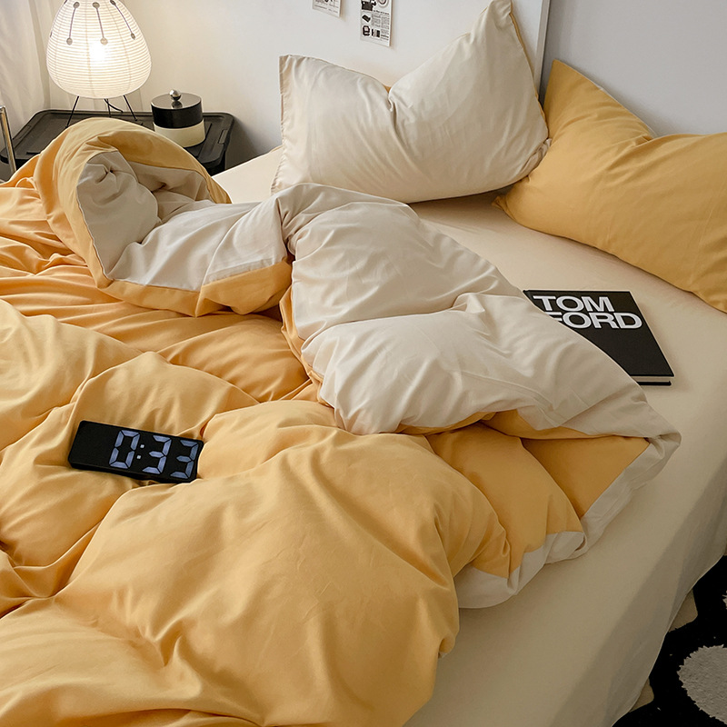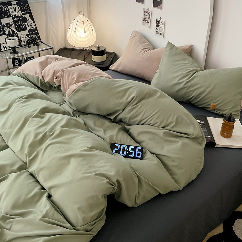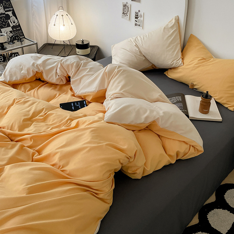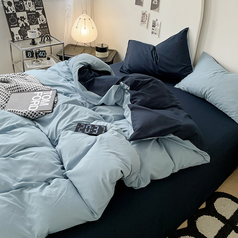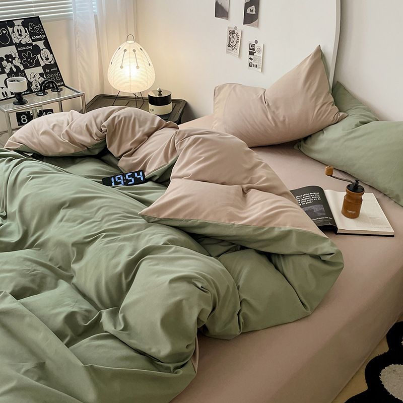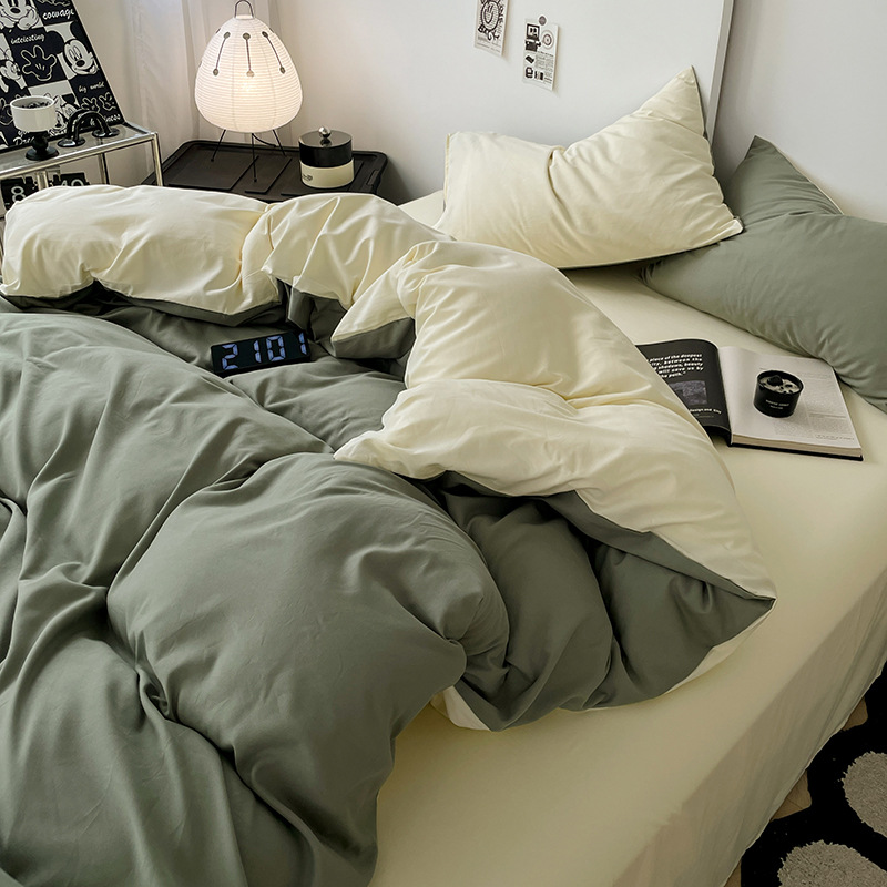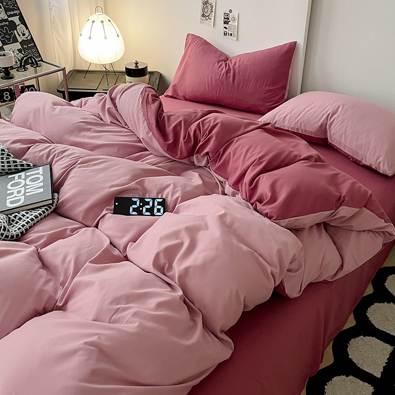 Главная страница > Комплект постельного белья в стиле минимализм из четырех предметов, свежий и простой однотонный комплект из стираного хлопка: простыня, пододеяльник, комплект из трех предметов для студенческого общежития
