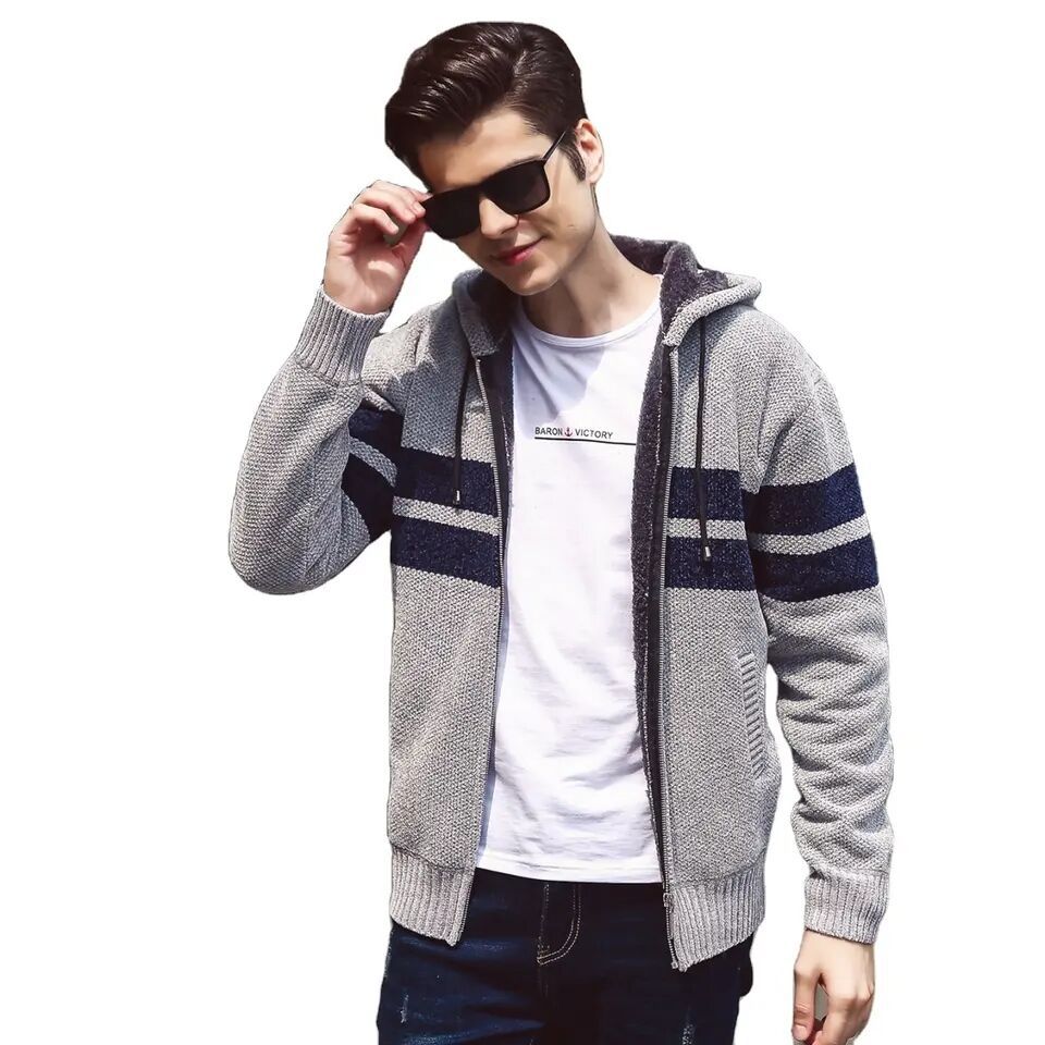 Главная страница > AliExpress трансграничный мужской свитер Кардиган Зимний утолщенный свитер с капюшоном из синели пальто