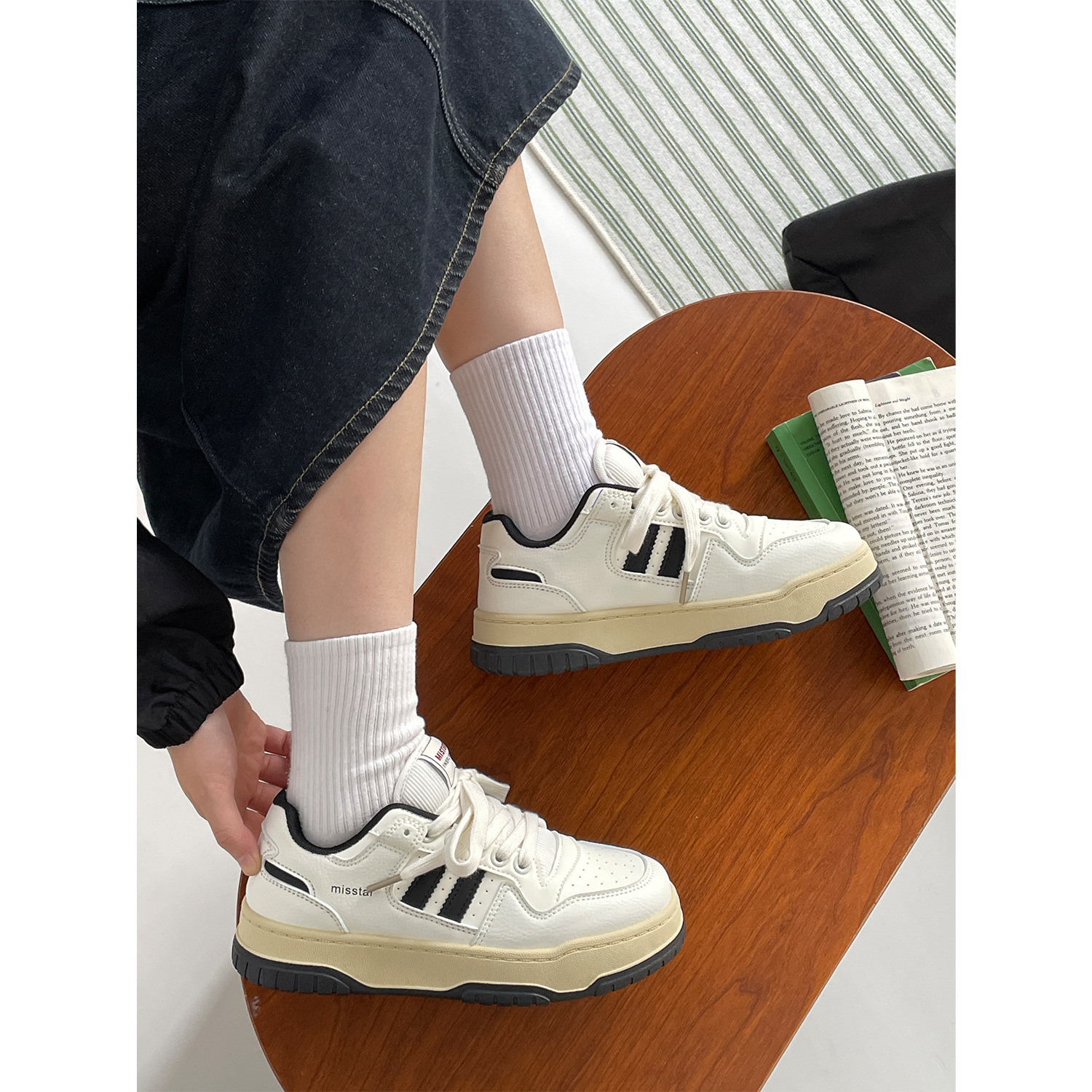Главная страница > Yuanyi Shoes Shoes 2024 осень новые ретро дикие кроссовки обувь на толстой подошве повседневная обувь женская MIS-2665