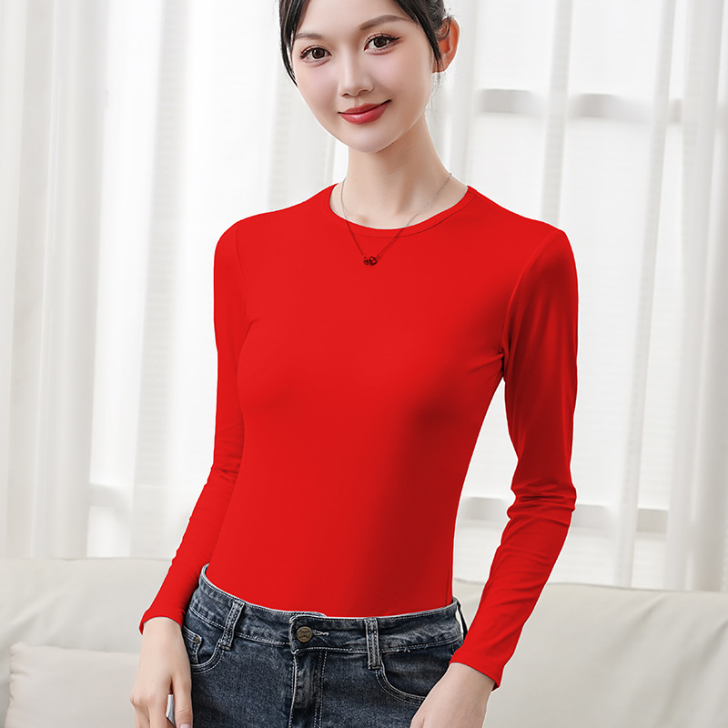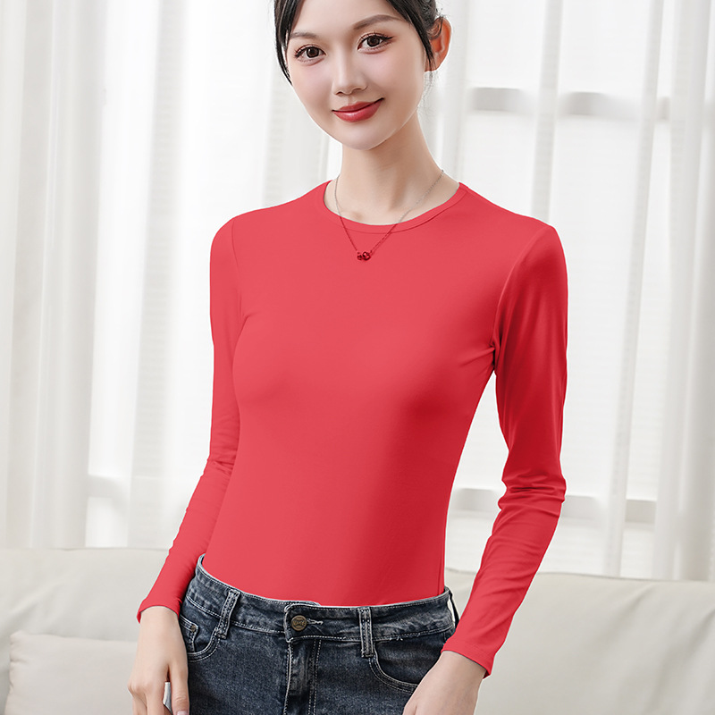 Главная страница > Футболка из модала, зимняя базовая одежда 2025 года, черная, с круглым вырезом, осенний топ для женщин, однотонная, с длинным рукавом, облегающая, для внутреннего ношения.