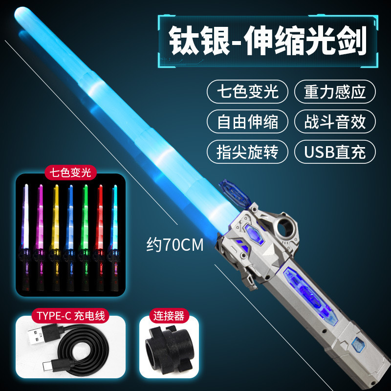 典雅白金-金箍棒【自动伸缩+风控+声控+七彩灯光+重力感应+充电版】