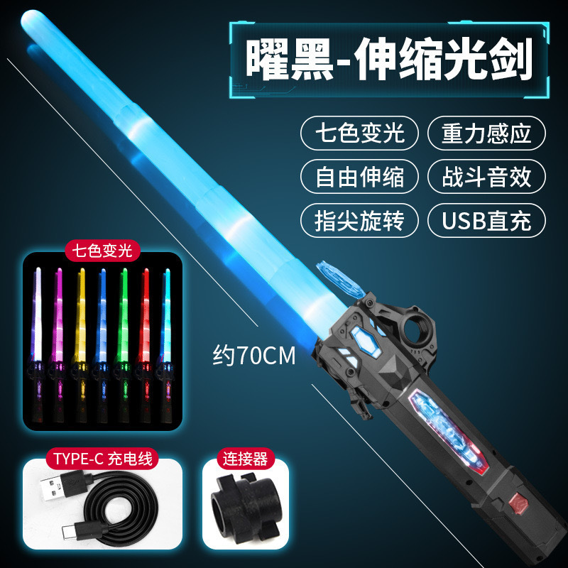 炫酷黑金-金箍棒【自动伸缩+风控+声控+七彩灯光+重力感应+充电版】
