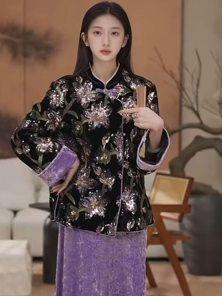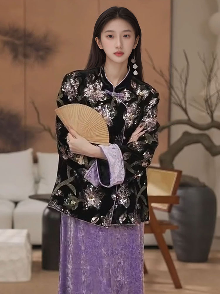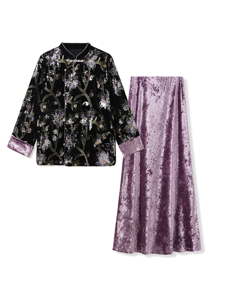 Главная страница > Ранний осенний новый китайский стиль старый китайский стиль тяжелый ветер вышитая куртка национальный стиль ретро вышивка блестки полуюбка костюм женский M9159