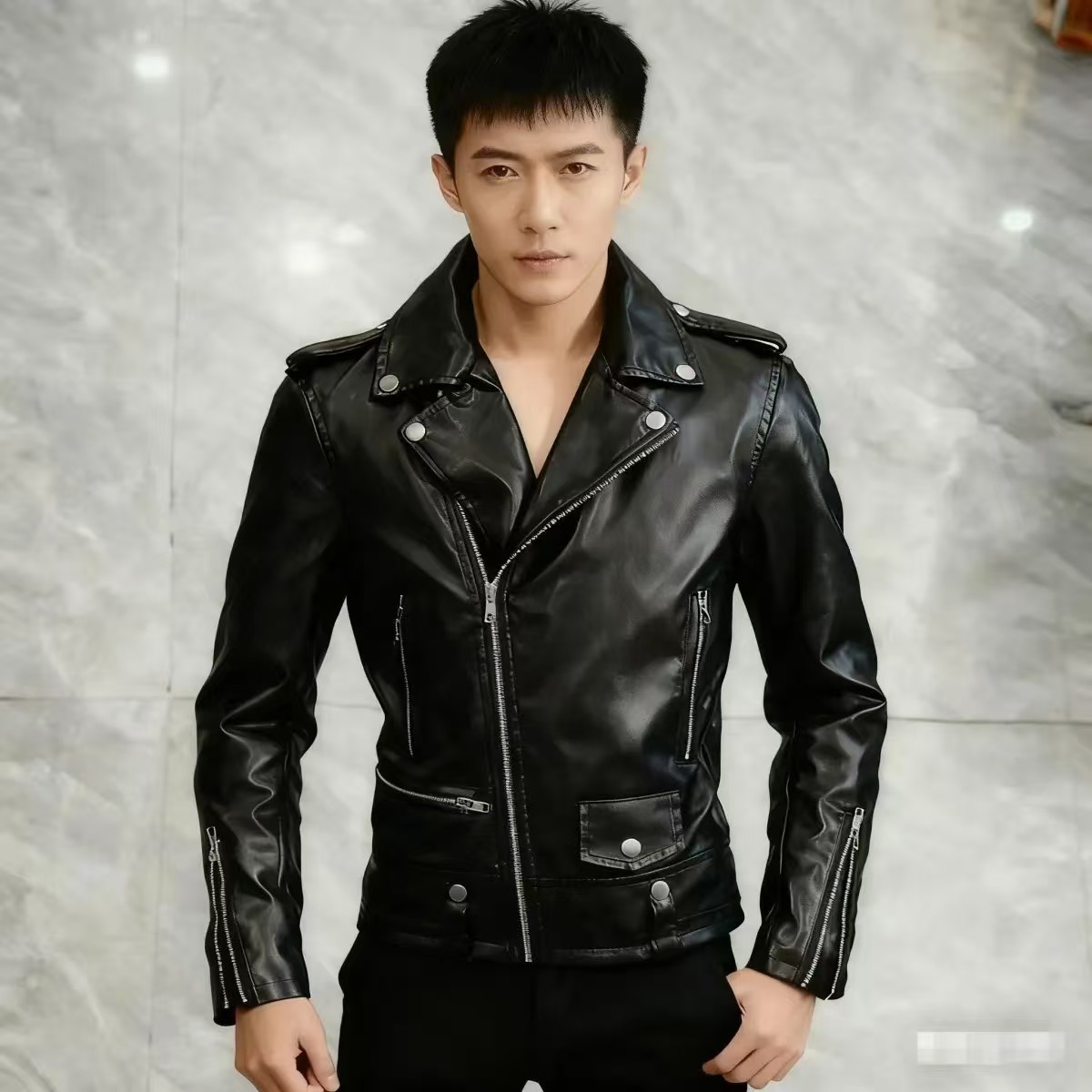 Главная страница > Новая осенне-зимняя мужская кожаная куртка в корейском стиле, приталенная, с хлопковой подкладкой, классический крой, производитель курток из искусственной кожи.