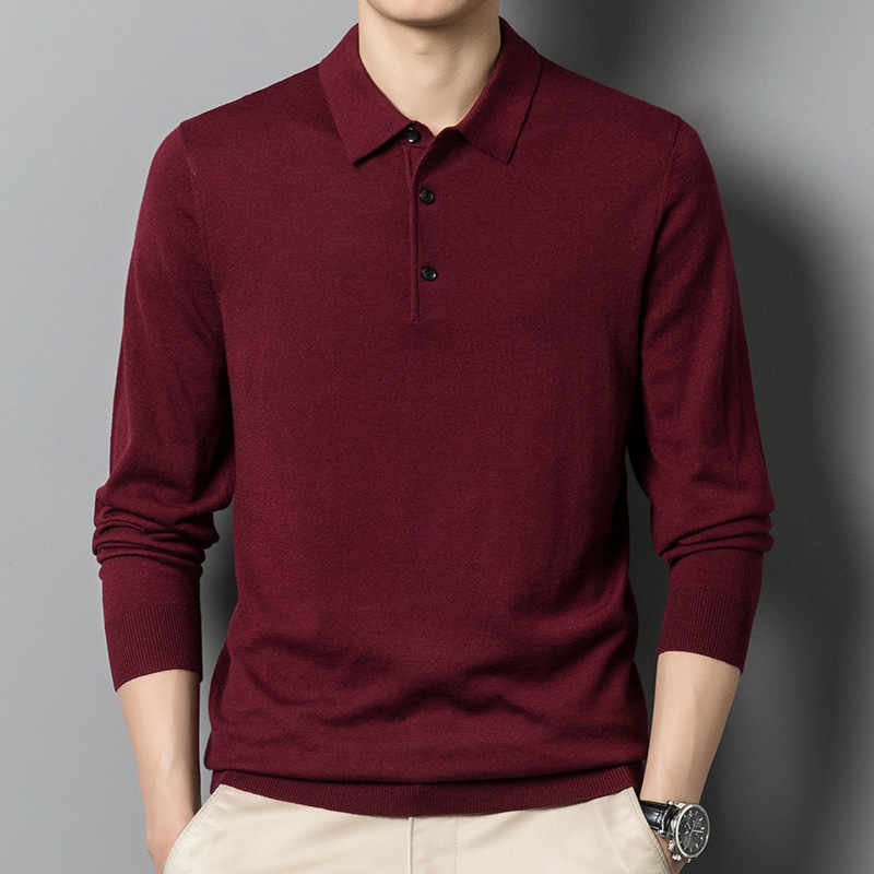Главная страница > Осенний новый 6% шерстяной мужской вязаный свитер сплошной цвет POLO воротник среднего возраста тонкий простой свитер с длинными рукавами для мужчин