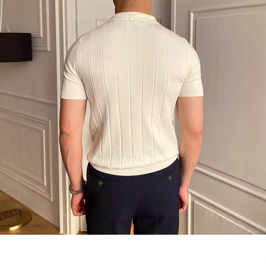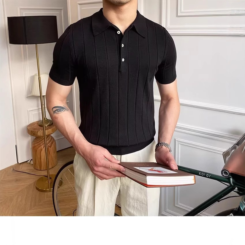 2025 весна и лето рубашка с воротником POLOO свитер мужской короткий рукав тонкая полосатый тренд сплошной цвет с лацканным воротником свитер для мужчин