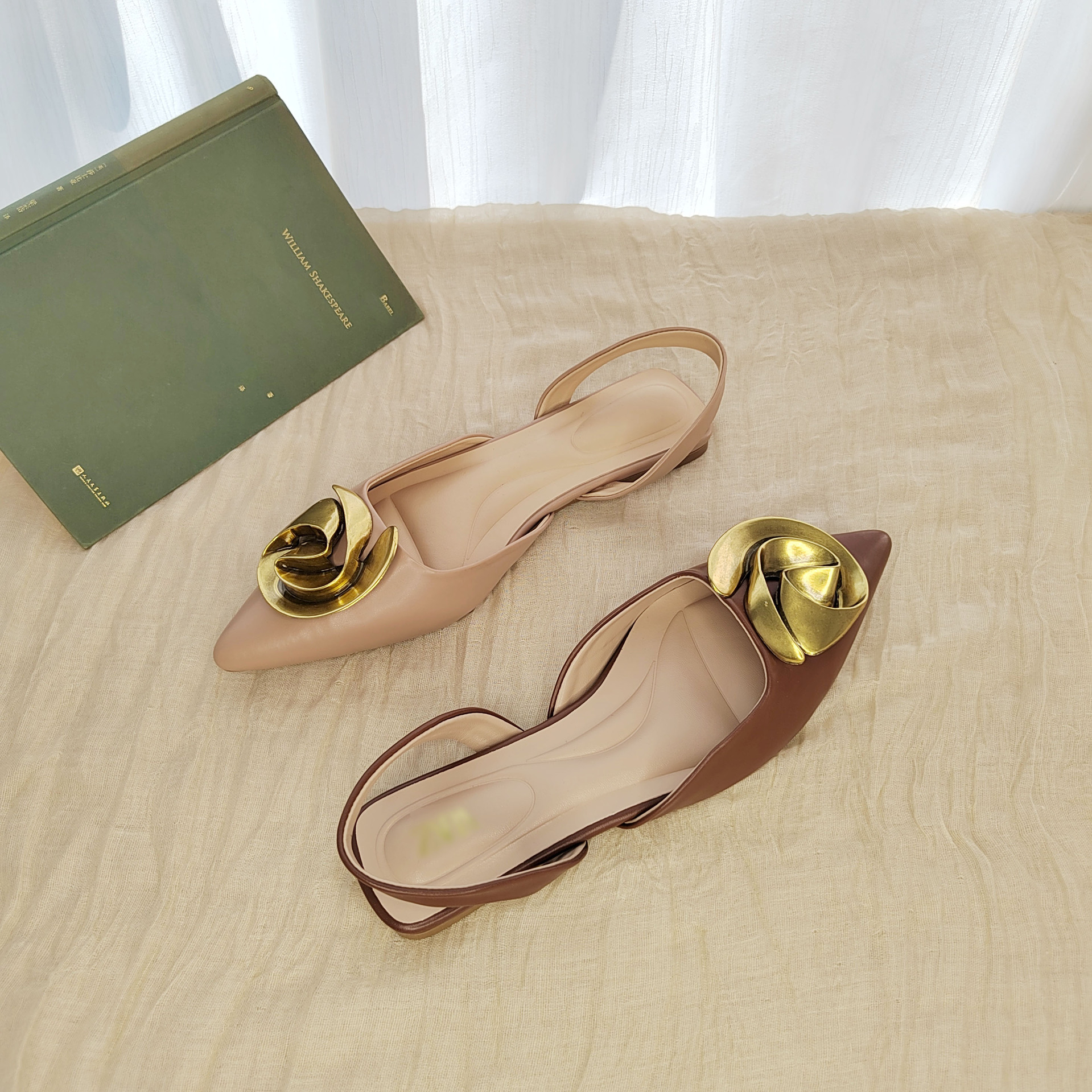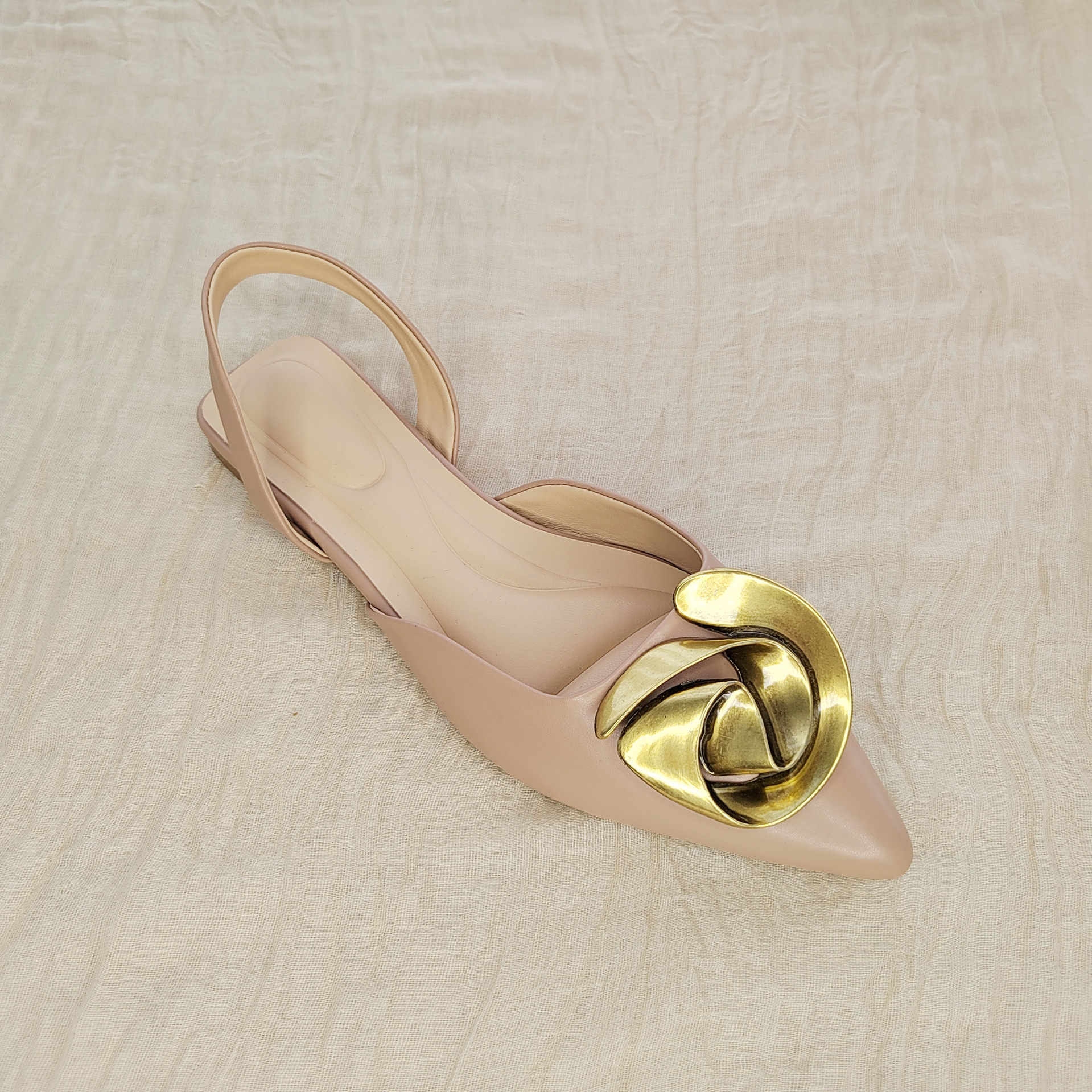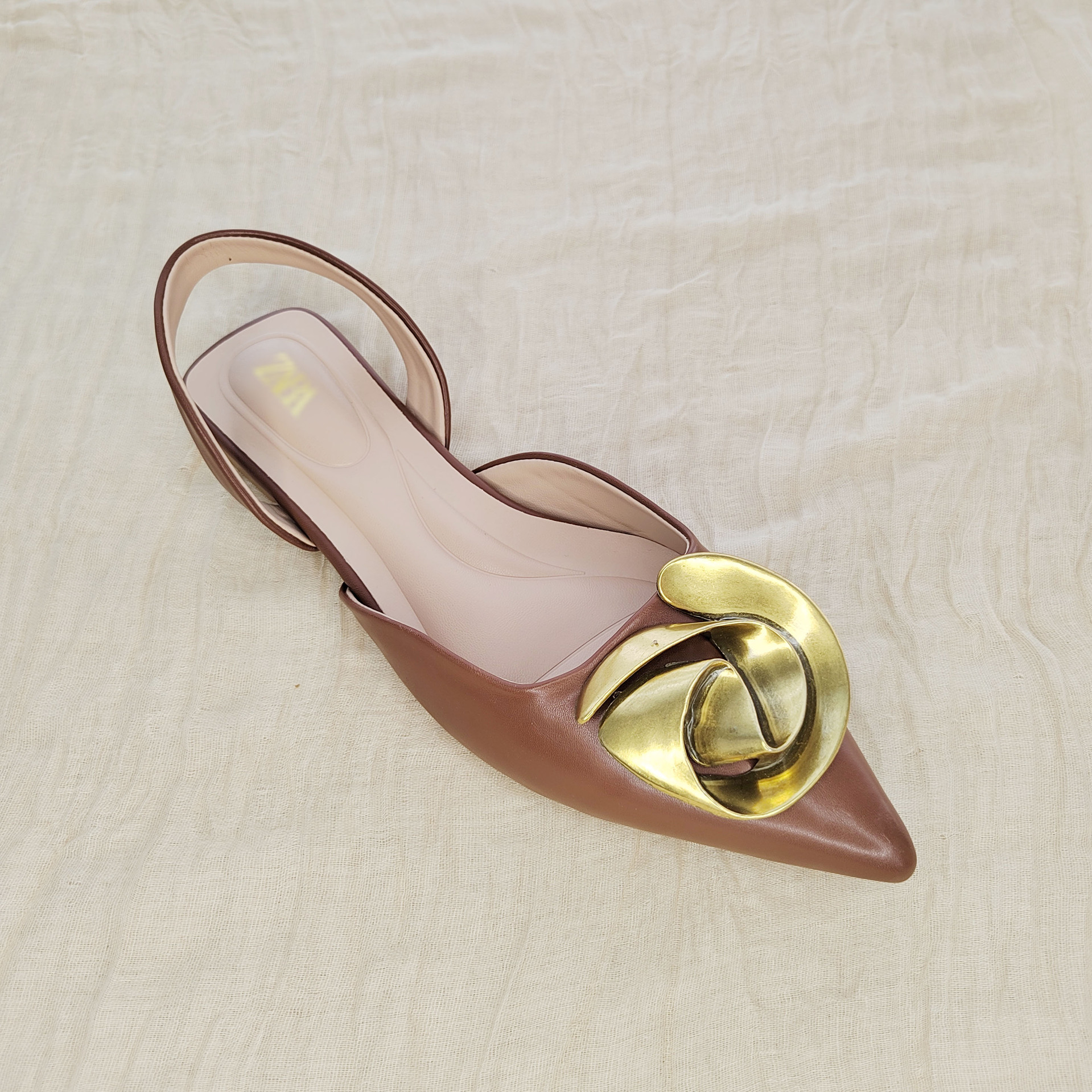 Главная страница > ZA та же модель 2025 весна и лето плоское дно остроконечные модные сандалии женские металлические цветы украшения пряжки и неглубокие туфли для детей