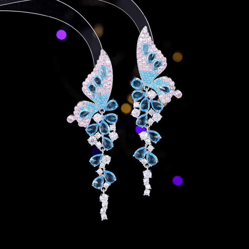 Роскошные элегантные серьги тяжелой промышленности оптом Европейский и американский придворный стиль, высококачественные банкетные Свадебные Длинные серьги-бабочки с каплями воды