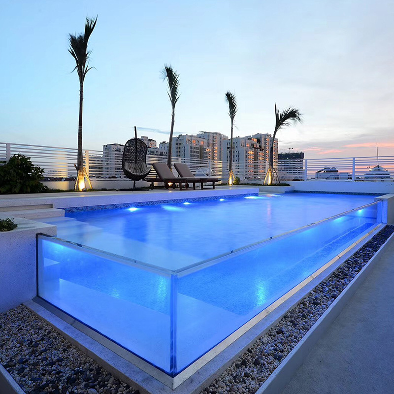 Дизайн и производство больших уличных акриловых прозрачных бассейнов для курортных отелей, включая утолщенные бассейны-«бесконечность».