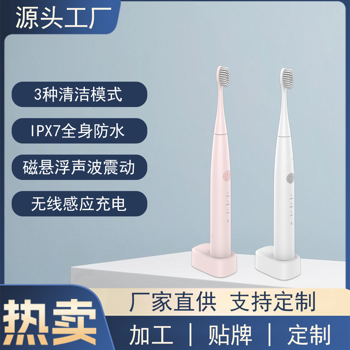 Производитель электрической зубной щетки с беспроводной зарядкой, умной звуковой вибрацией, мягкой щетиной, модель для взрослых, OEM для трансграничных поставок