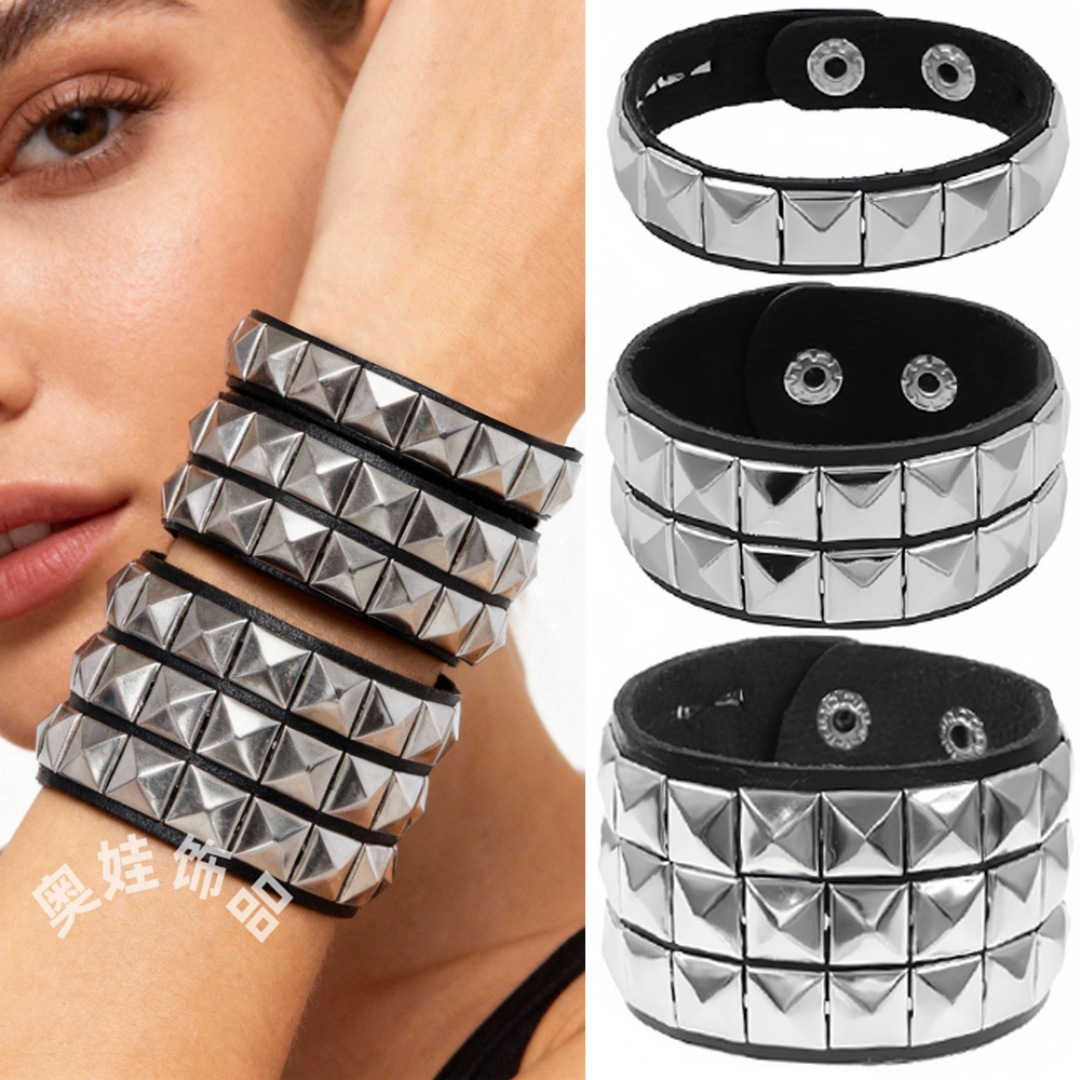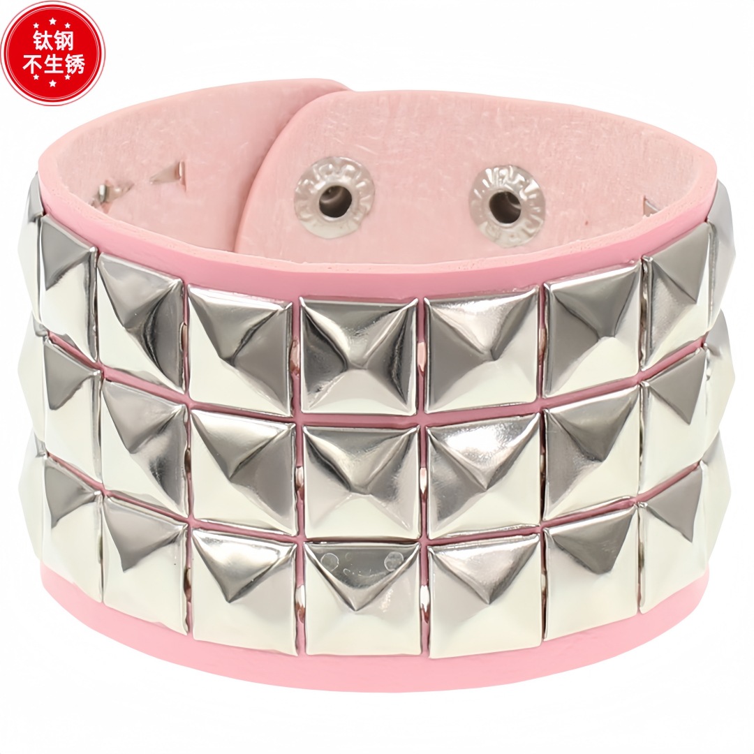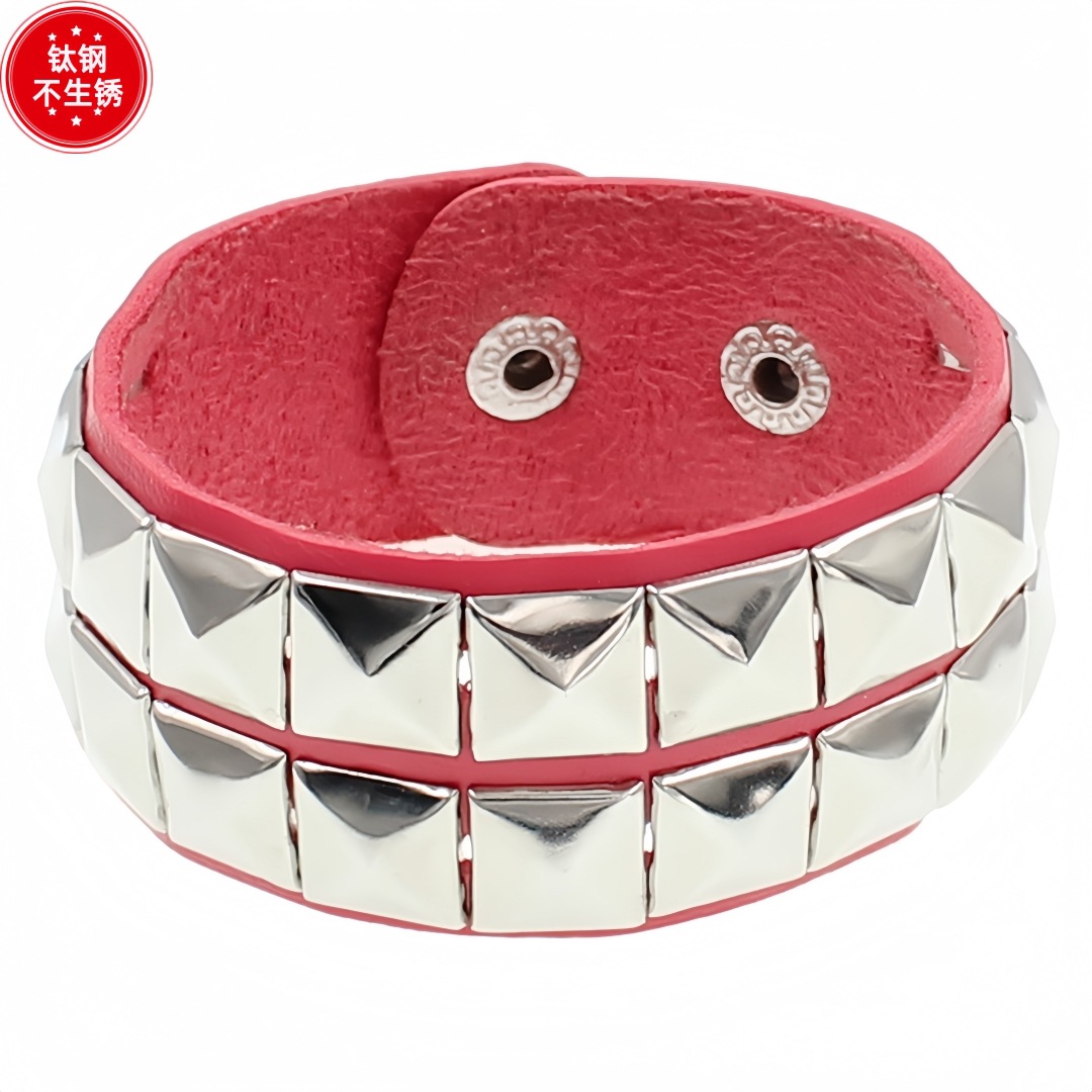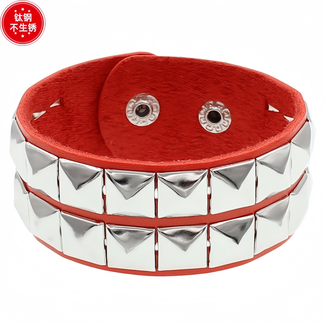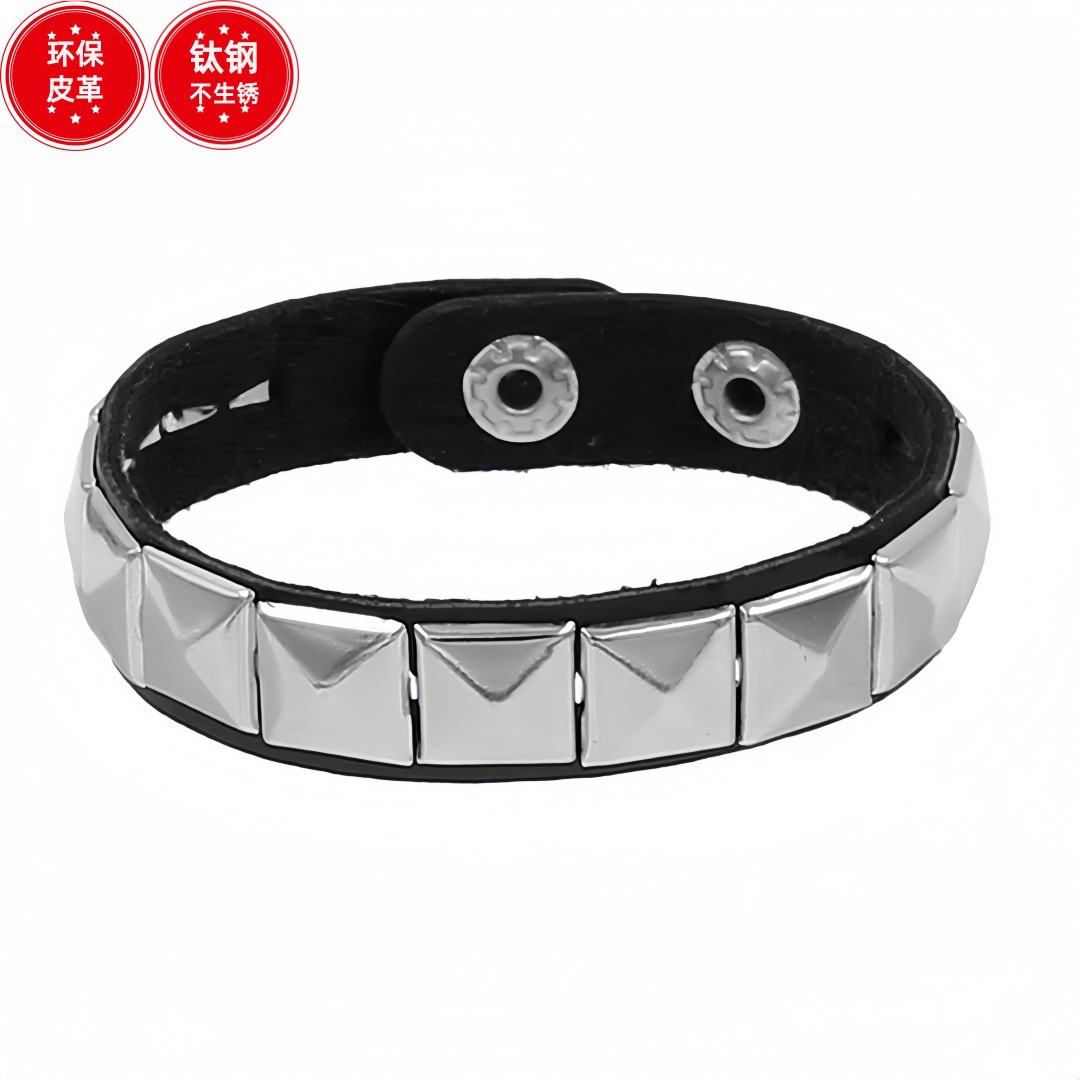 Главная страница > Экологичный браслет из искусственной кожи и титановой стали в европейском и американском стиле, модный панк-браслет с квадратными заклепками, парный браслет-бэнгл.