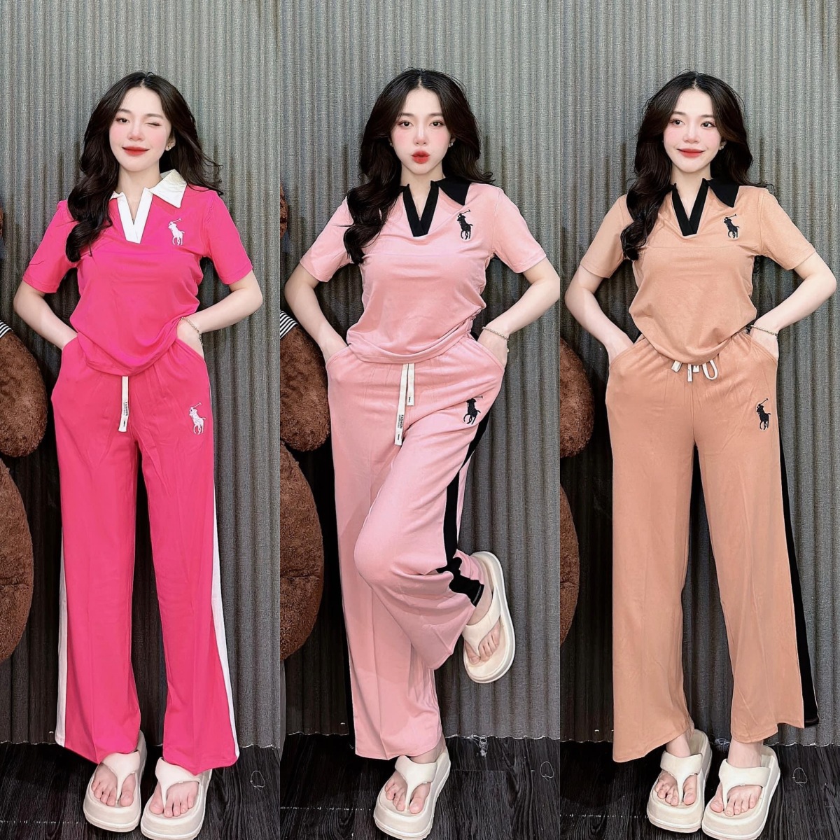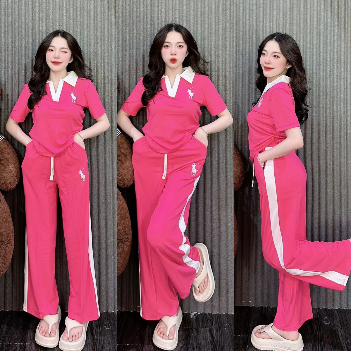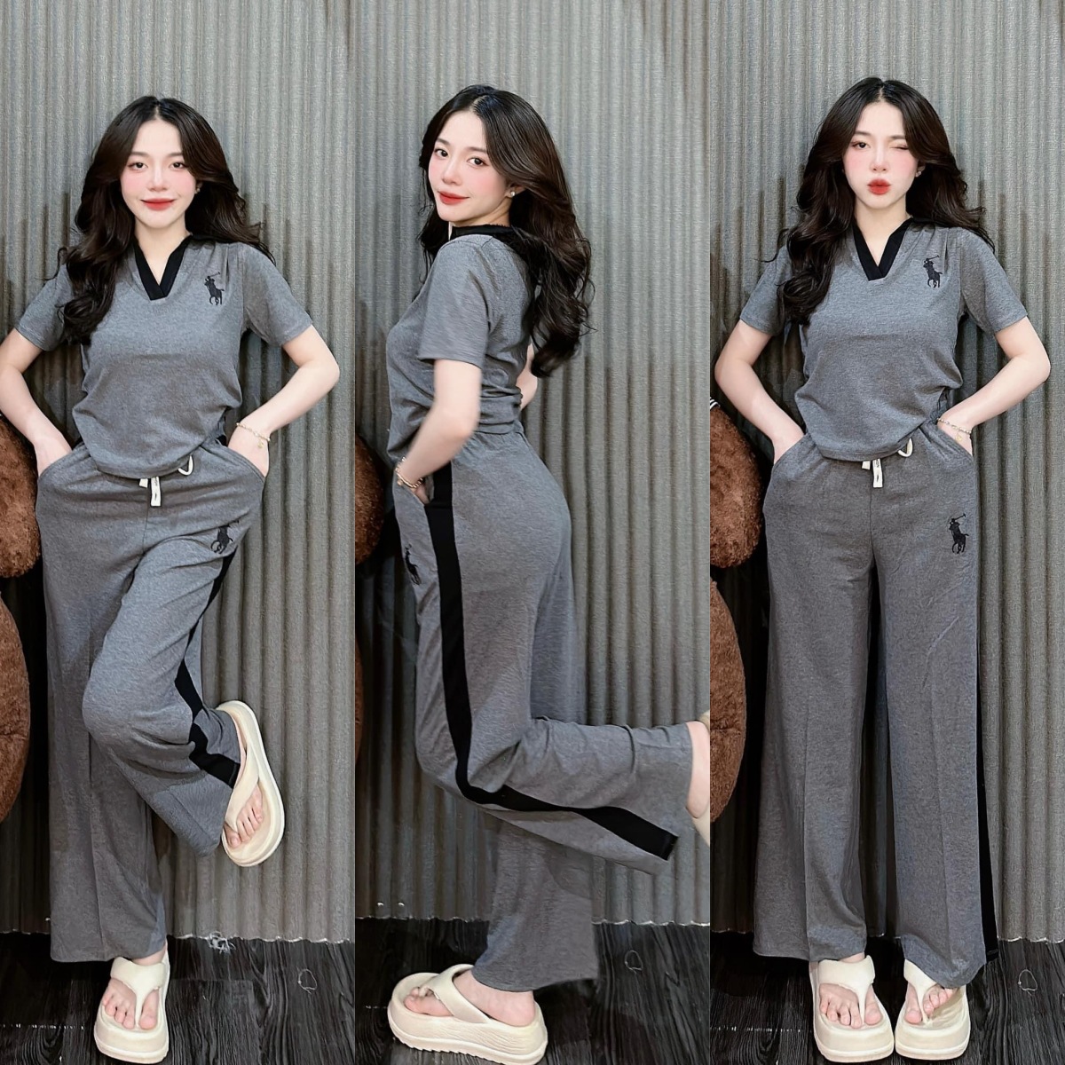Главная страница > Трансграничный повседневный спортивный костюм для женщин, летний новый стиль, уменьшающий возраст, брюки-поло с короткими рукавами и широкими штанинами, комплект из двух предметов