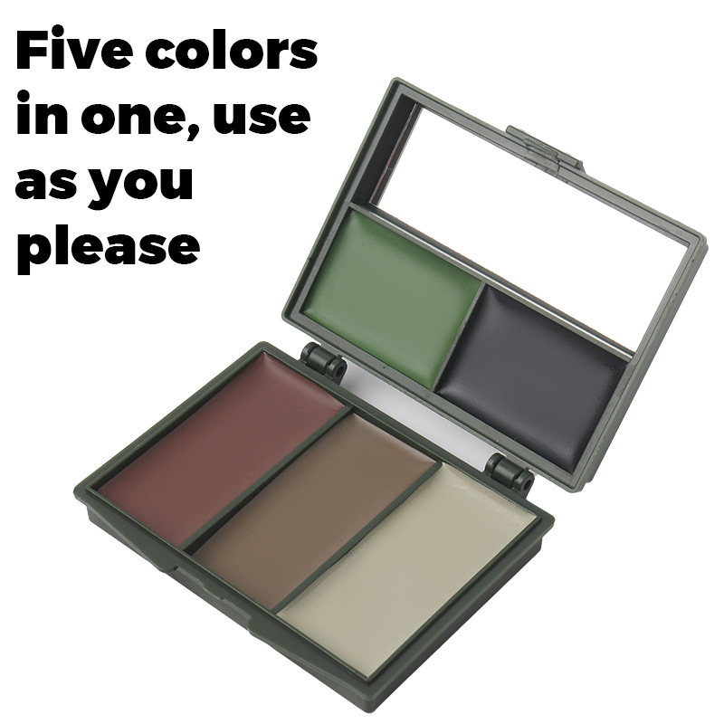 Квадратная коробка с зеркалом, пятицветная краска для лица, веер, защита от пота, краска для лица, масляная краска для лица, полевая подготовка, водонепроницаемый камуфляж
