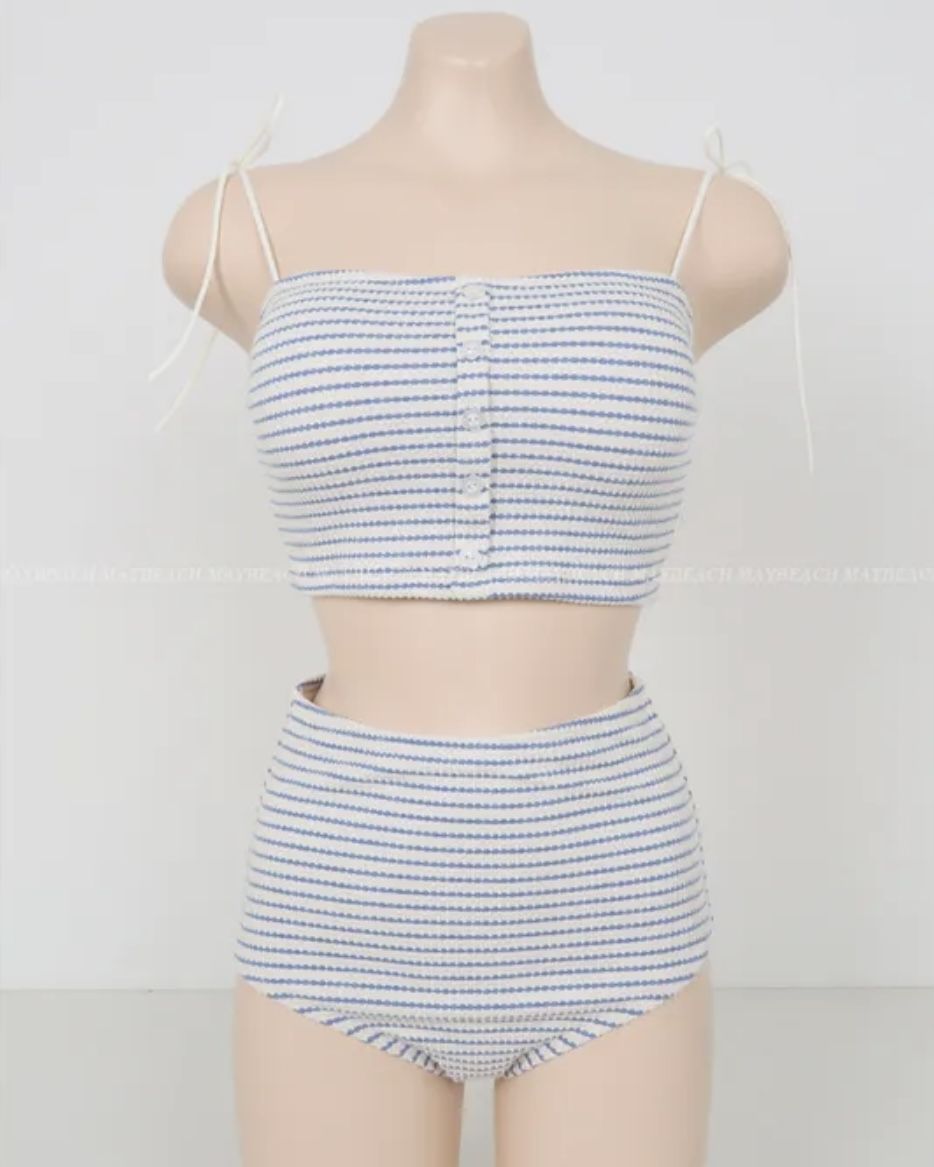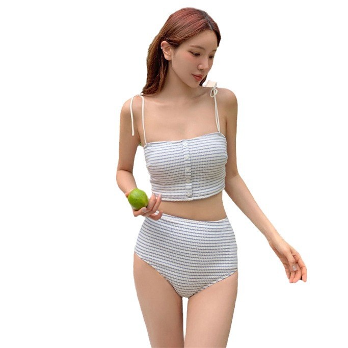 24 новых цельных купальника, женский купальник без рукавов в полоску, консервативный стиль, модный маленький свежий купальник на подтяжках, ins