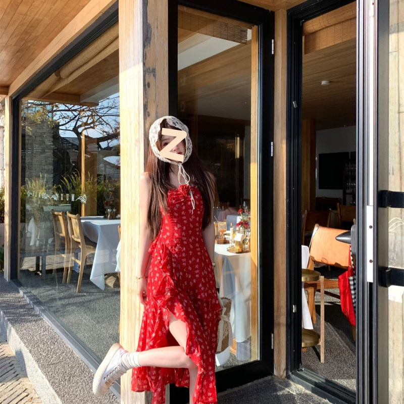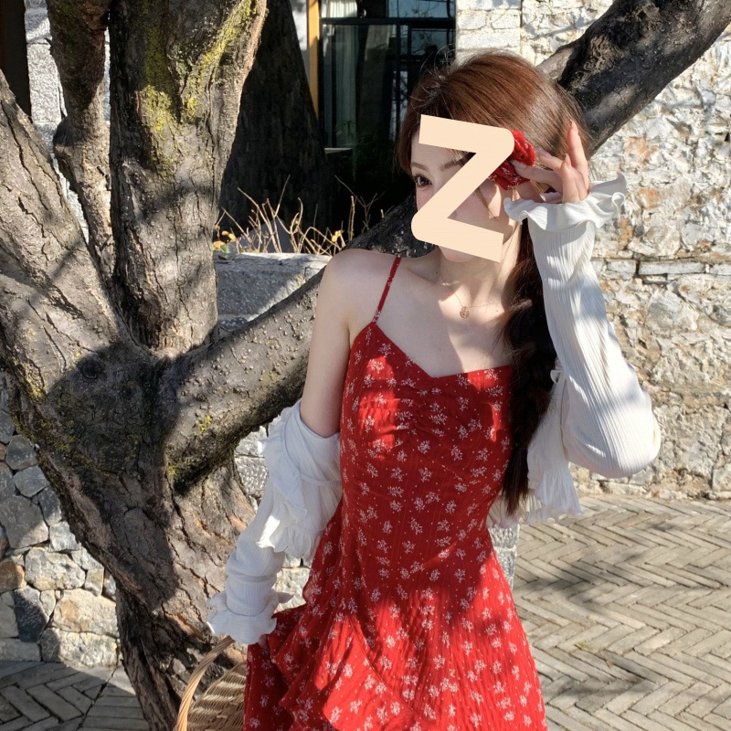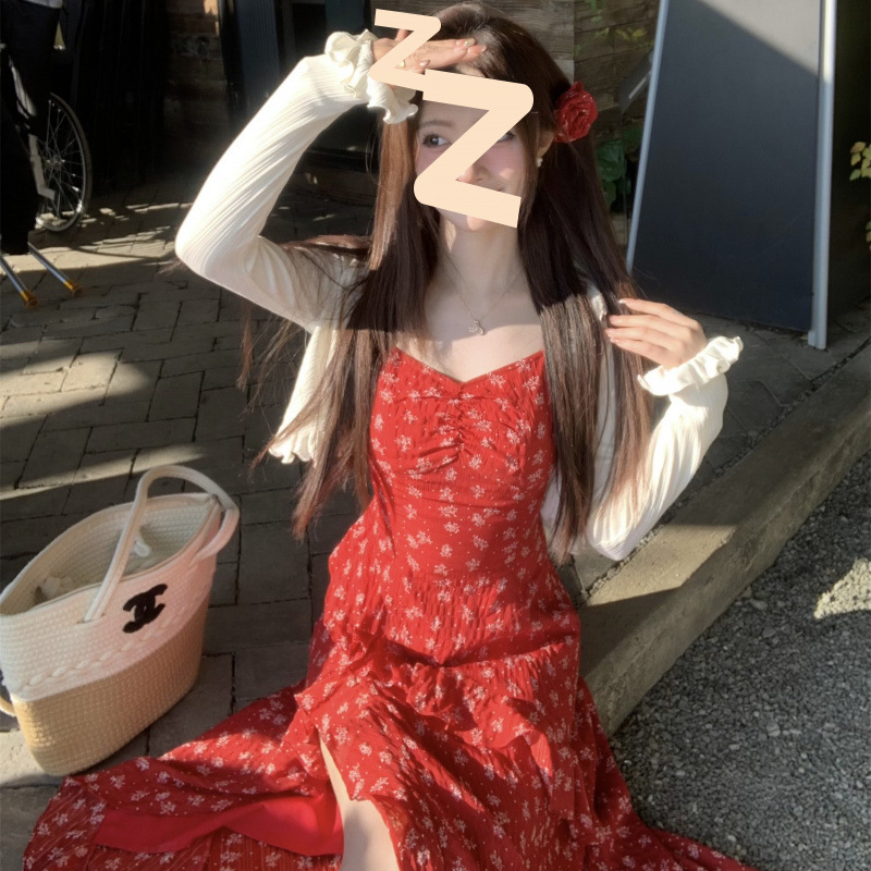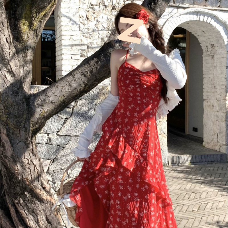 Главная страница > Весенне-летний костюм 2025 года: красивый красный кардиган с цветочным принтом и длинной юбкой на бретелях с разрезом для отдыха, женский комплект из двух предметов