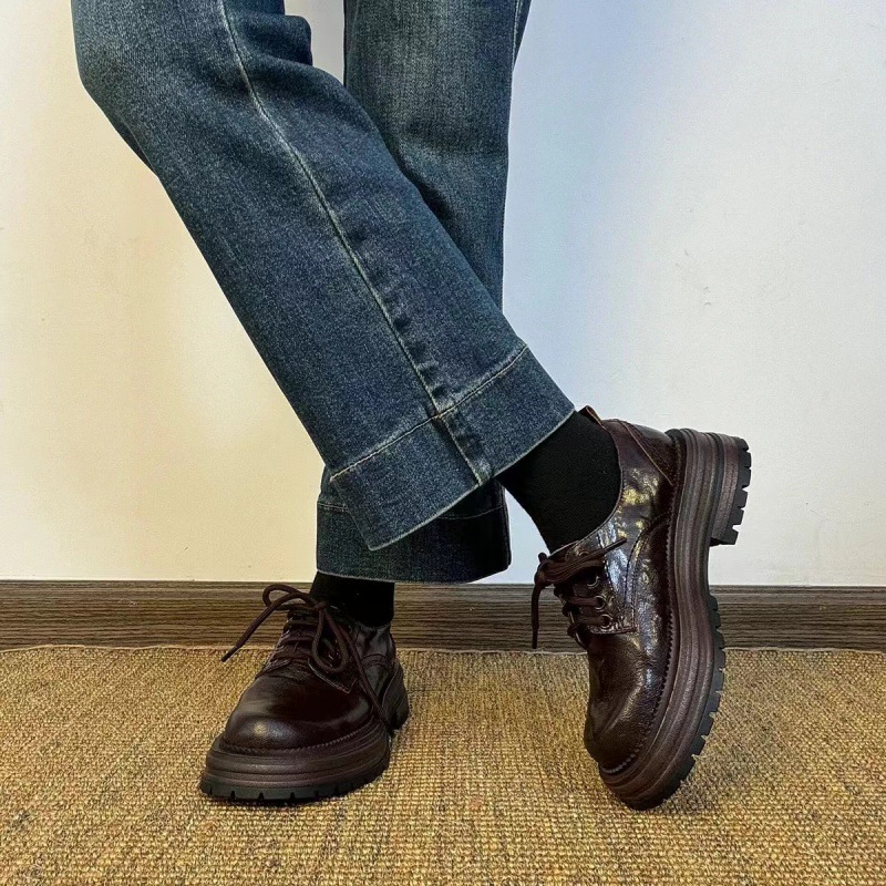 Крест в британском стиле кожаные туфли на толстой подошве маленькие кожаные туфли женские 2024 осенние круглые туфли ретро Lefu туфли на толстом каблуке