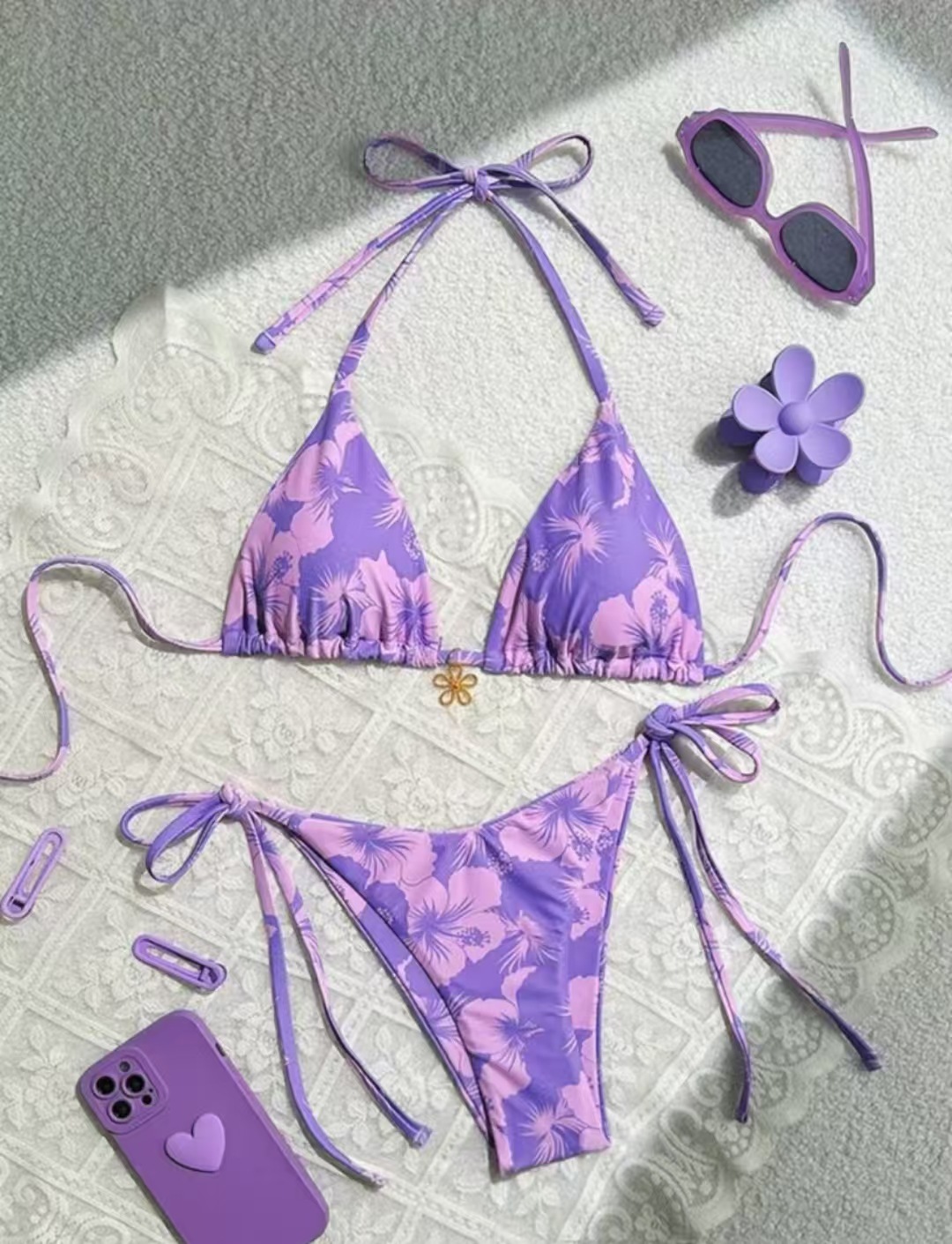 Главная страница > 2025 Европейский и американский кросс-бордерный новый купальник с кружевной шнуровкой и принтом, высококачественный раздельный двухсоставной купальник для женщин