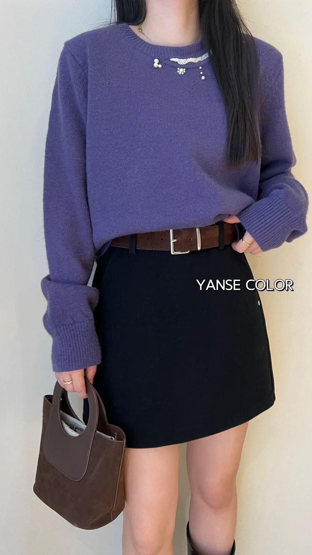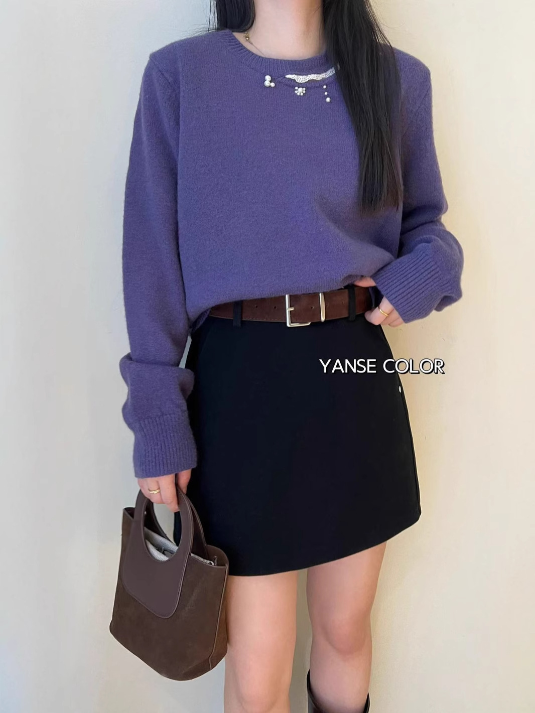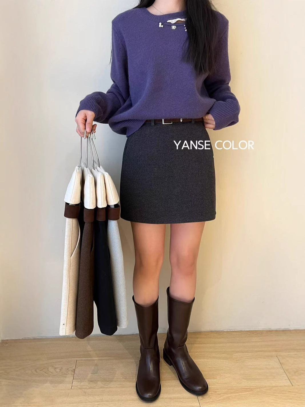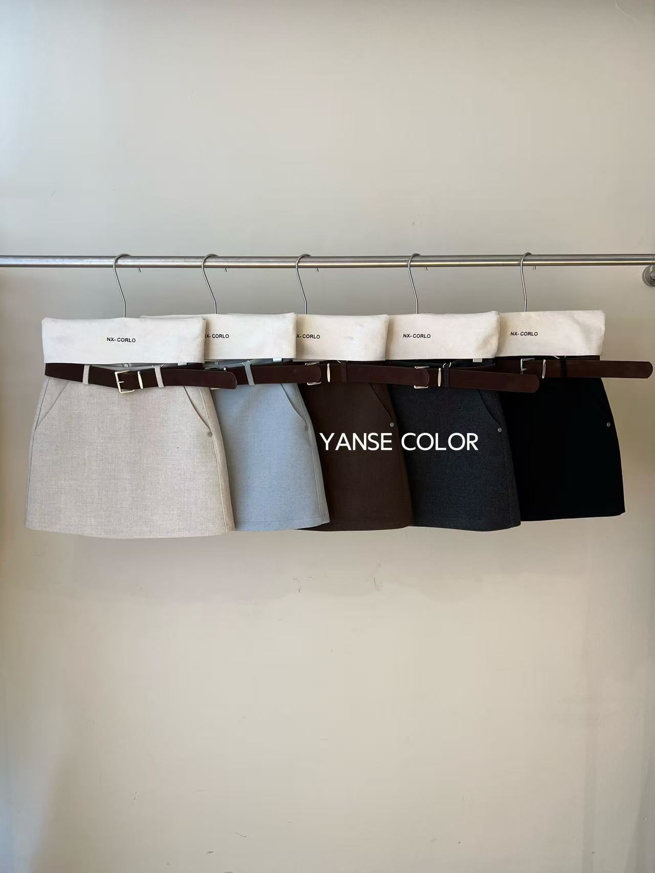 Юбка YANSE COLOR, новая коллекция осень-зима, шерстяная, короткая, для женщин, в корейском стиле, простая и элегантная, с завышенной талией, А-силуэт, с поясом.