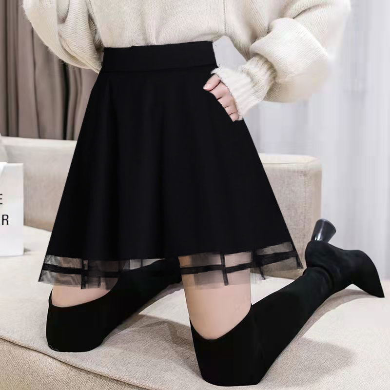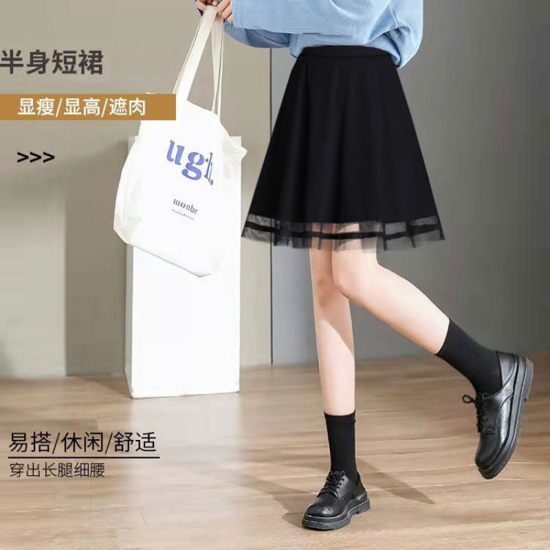 Главная страница > Весенне-осенний новый стиль, женская юбка трапециевидной формы с высокой талией для похудения, большие размеры, универсальная модная черная короткая юбка.