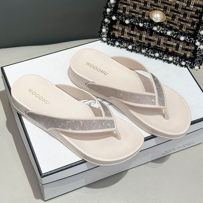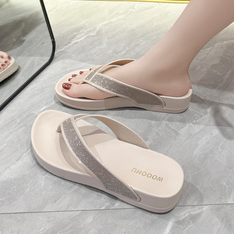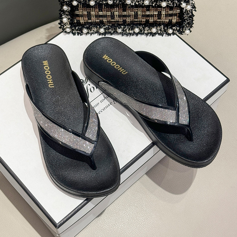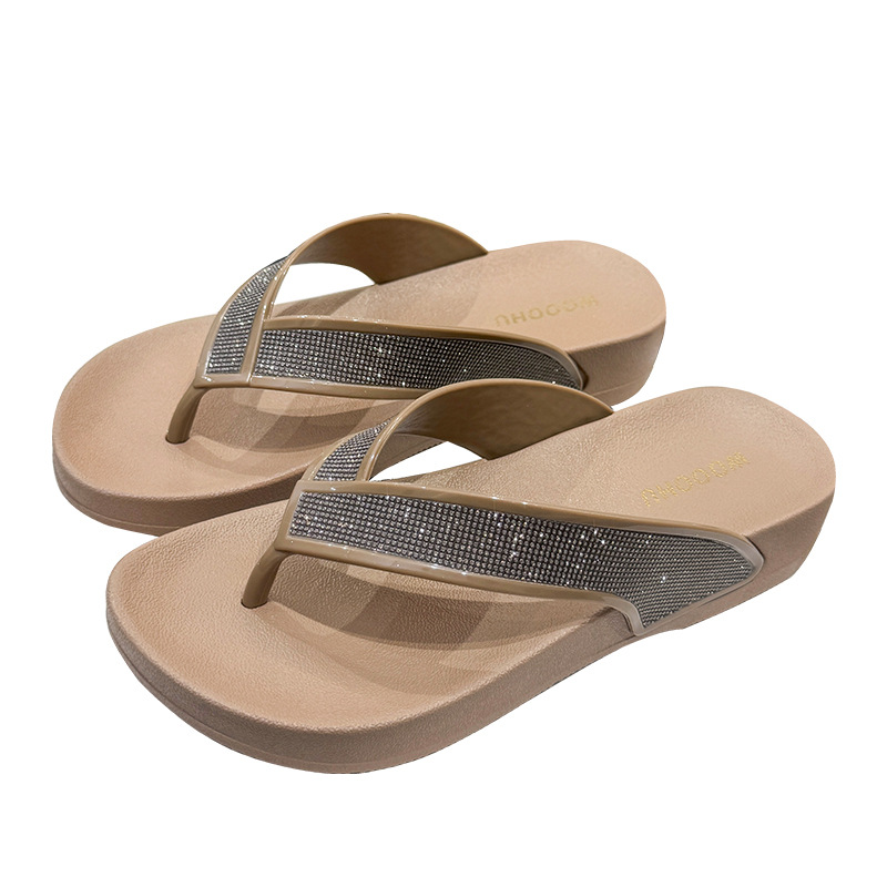 Главная страница > 2025 новых женских шлепанцев для лета, модные шлепанцы с толстой подошвой и стразами, пляжные сандалии для отдыха на море