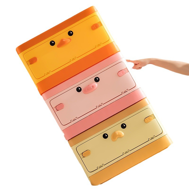 Главная страница > Ящик для хранения игрушек Бытовая складная пластиковая отделочная коробка большой емкости Мультфильм Милая забавная утка Трехдверный ящик для хранения