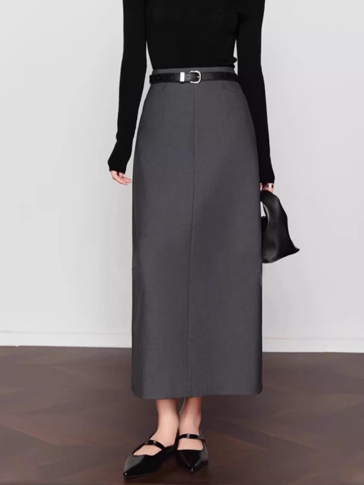 Главная страница > Плюс сайз серая юбка для женщин 2025 весна новая юбка-костюм с высокой талией для полных мм, утягивающая юбка средней длины