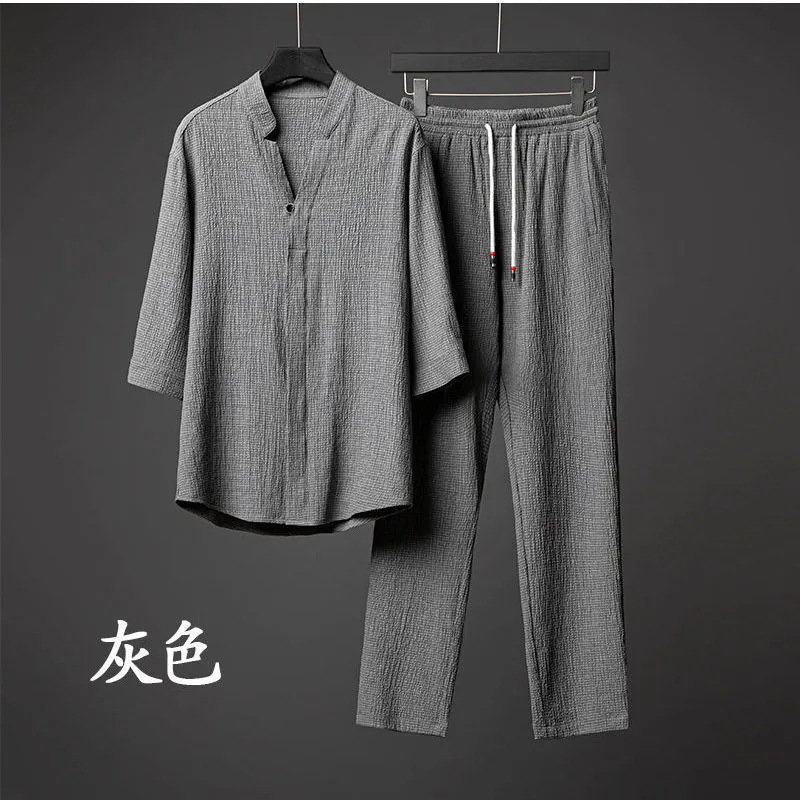 Популярная мужская одежда, роскошный ультратонкий костюм с рукавами три четверти, мужской летний свободный комплект из двух предметов большого размера со средними рукавами, 2025, оптовая продажа