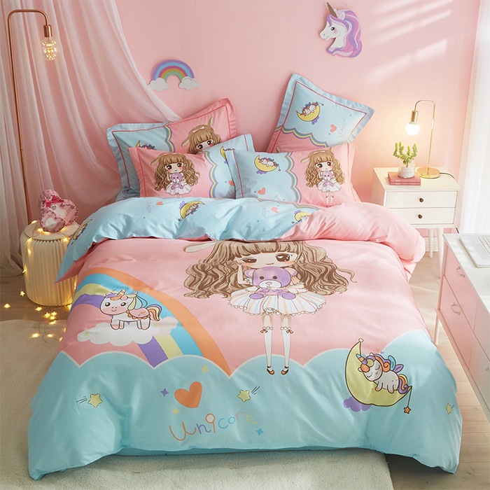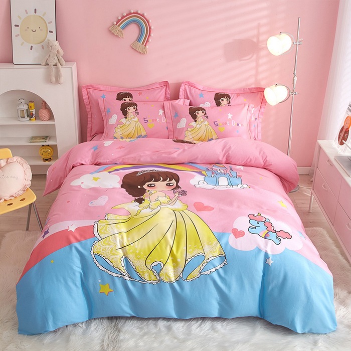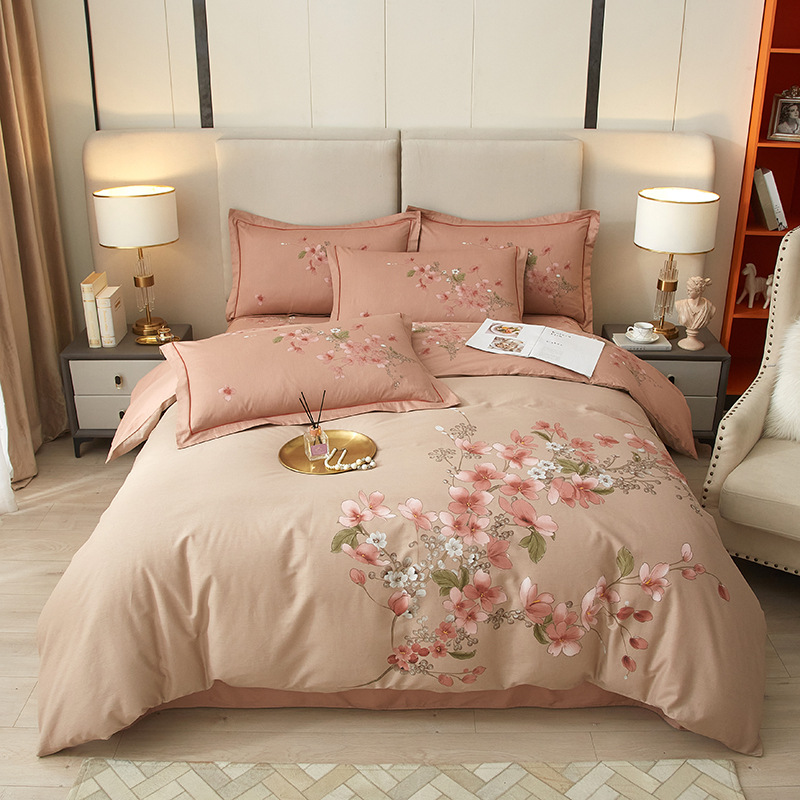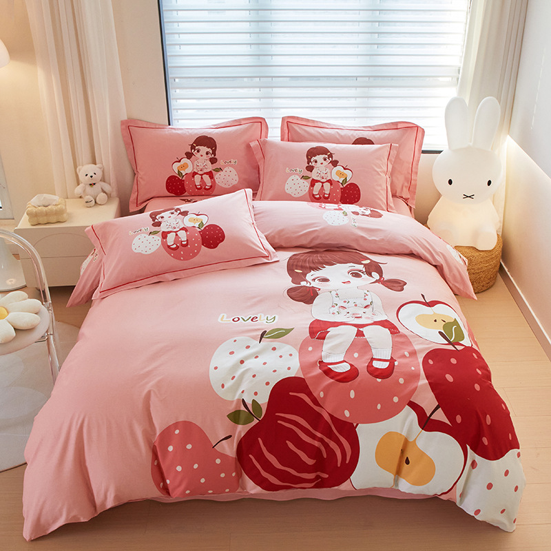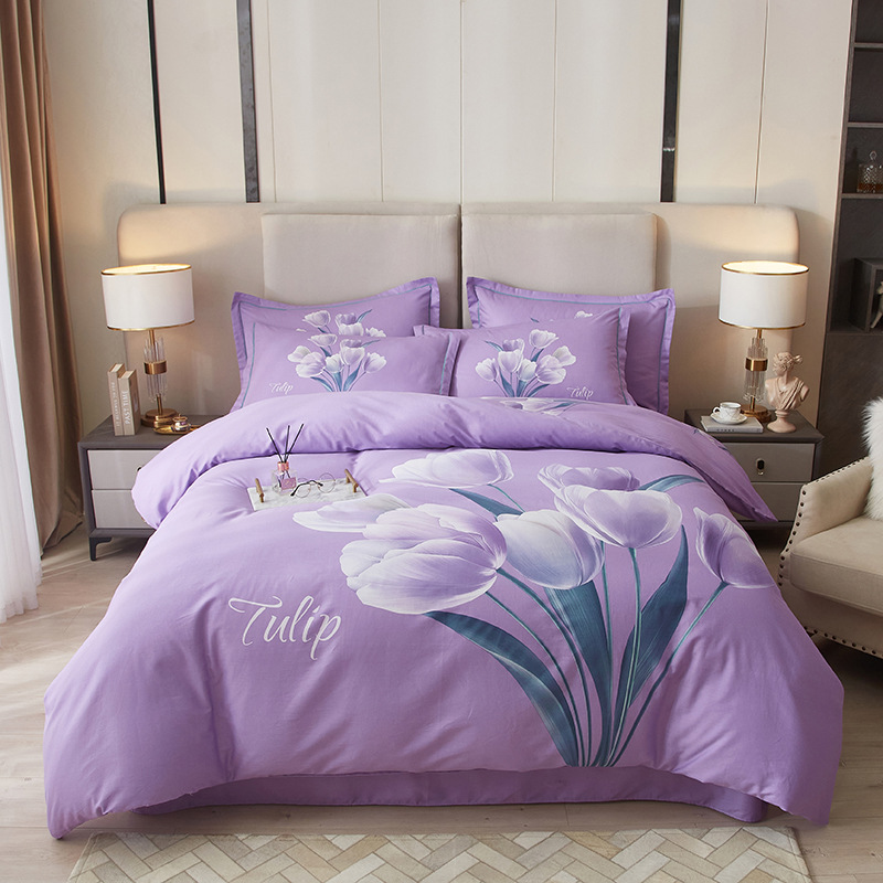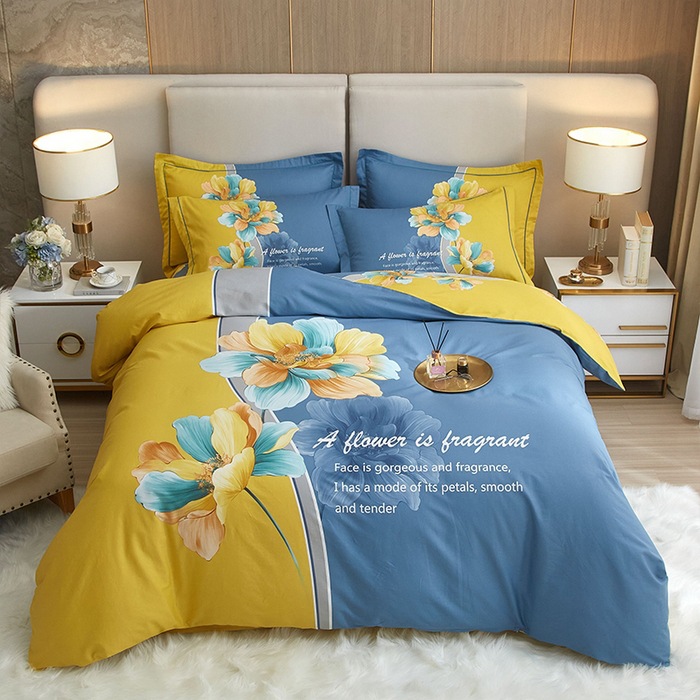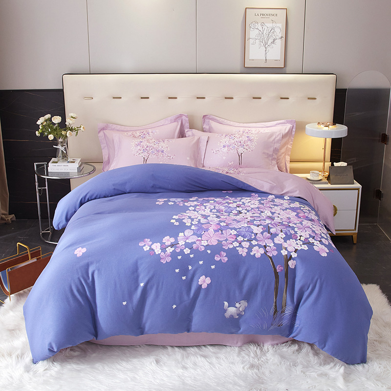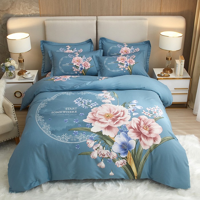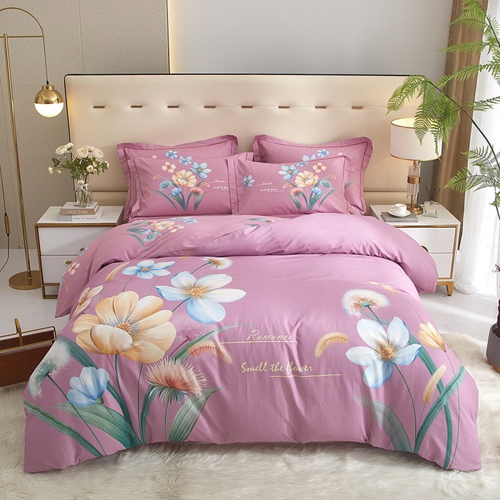 Главная страница > Хлопковая утолщенная хлопковая саржа из четырех частей с большим цветком, простая мультяшная двуспальная простыня, пододеяльник, постельное белье оптом