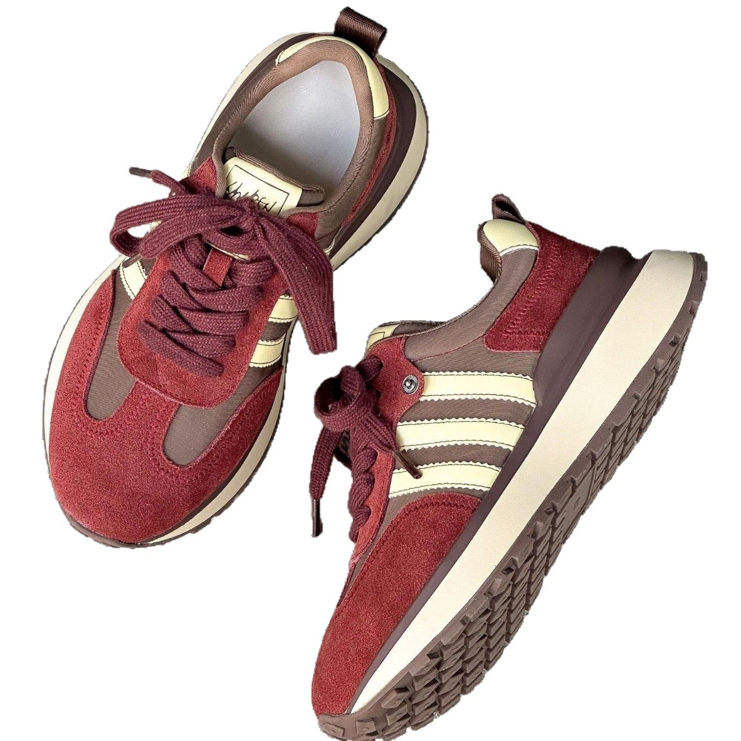 (Le Wei) Толстый цвет арганд обувь женские 2025 новые кожаные ретро спортивные повседневные кроссовки женские