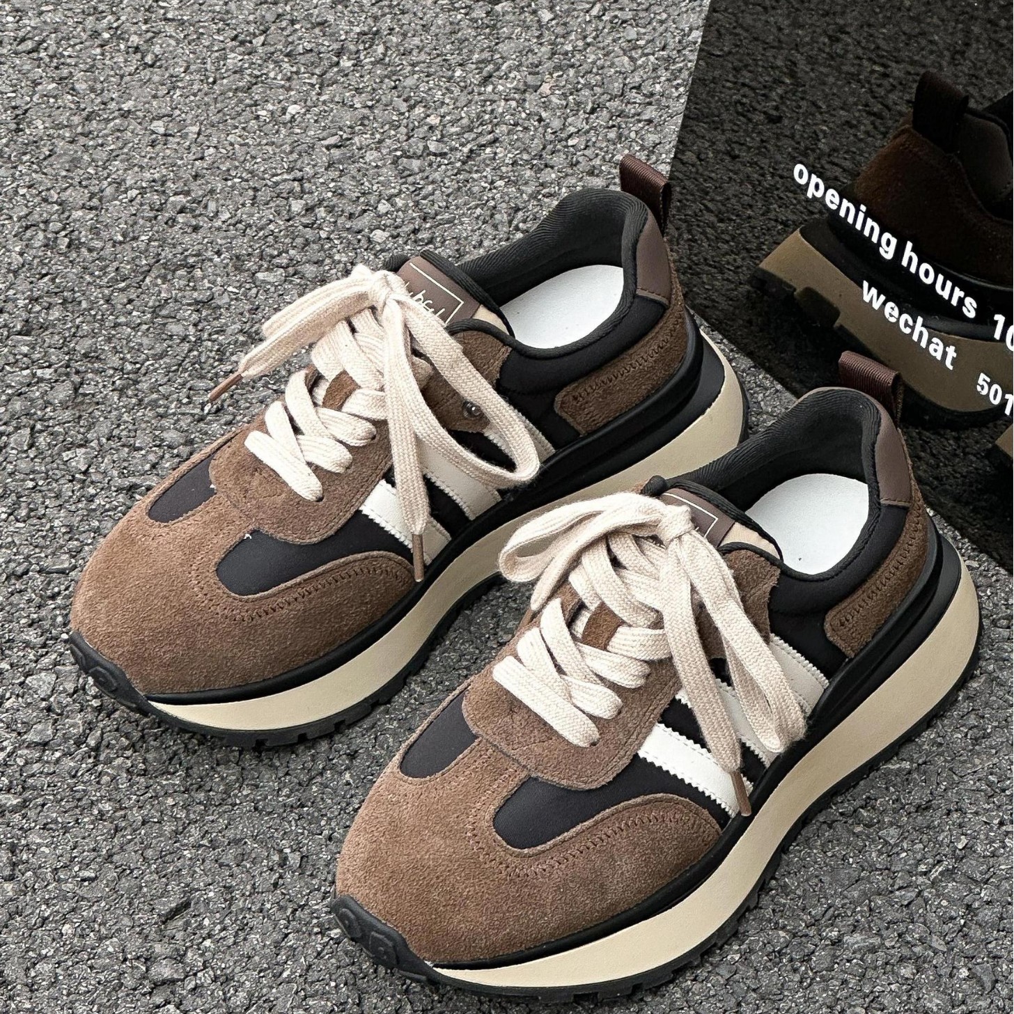 Главная страница > (Le Wei) Толстый цвет арганд обувь женские 2025 новые кожаные ретро спортивные повседневные кроссовки женские