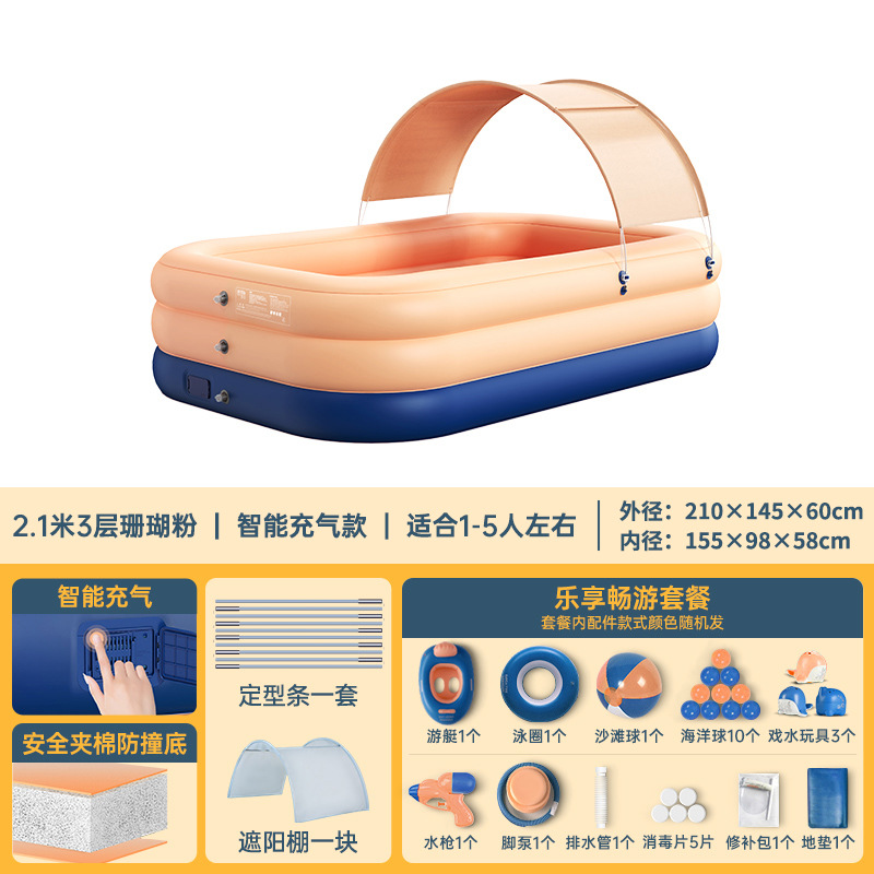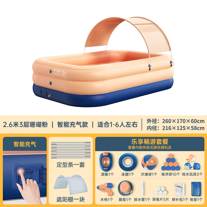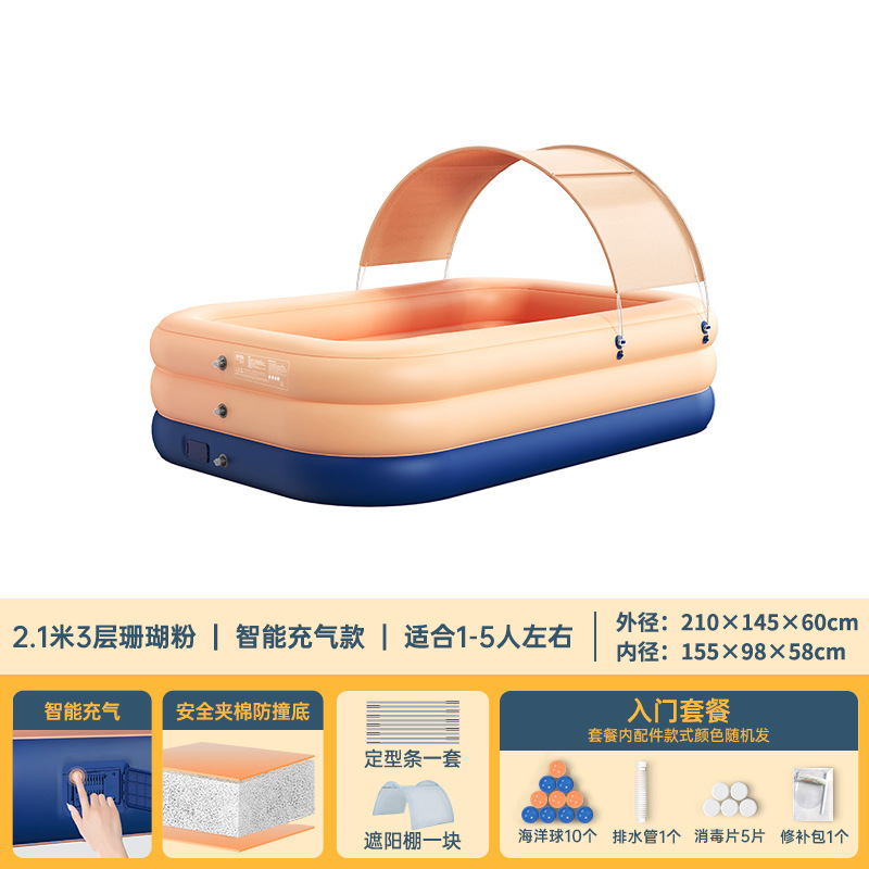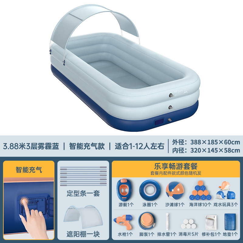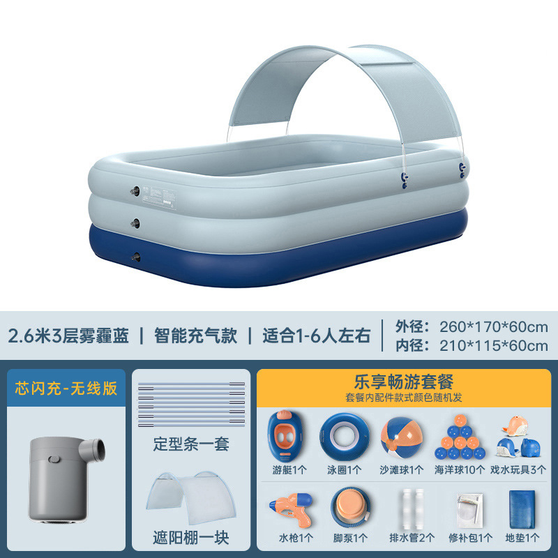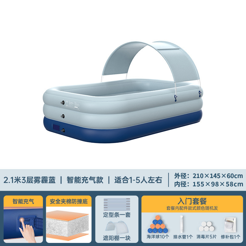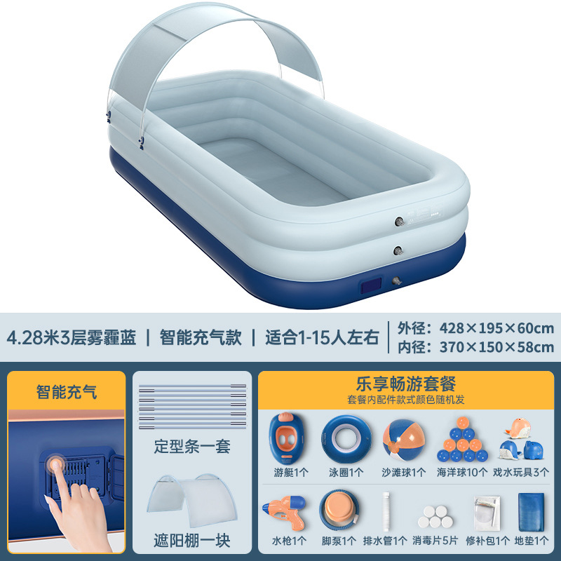 Главная страница > Большой утолщенный бассейн для детей и взрослых, автоматический надувной уличный бассейн с навесом от солнца для двора
