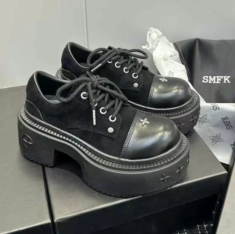 Главная страница > Туфли SMFK Derby с перекрестным узором, винтажные туфли на платформе из натуральной кожи на толстой подошве, повседневные туфли «панды», кеды на платформе для увеличения роста, женские туфли на высоком каблуке.