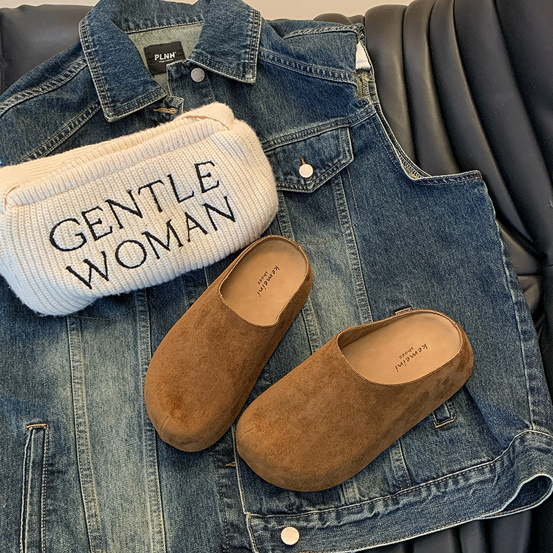 Главная страница > Женские тапочки Birkenstock в стиле ретро с увеличенной высотой, новинка весны и осени 2024 года, полутапочки Birkenstock из нубука на толстой подошве