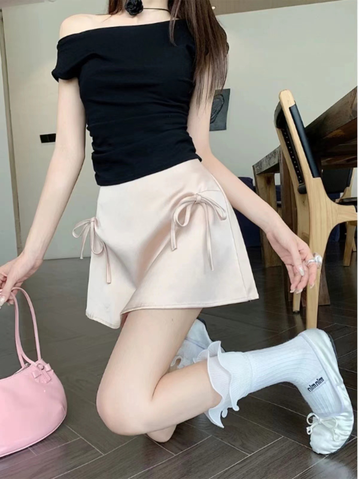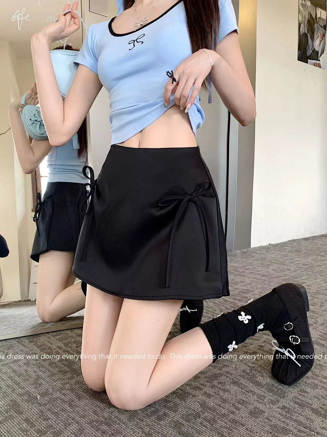 Атласный бантик юбка с бюстом женский летний 2024 новый анти-блеск