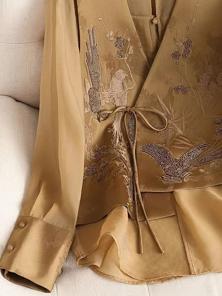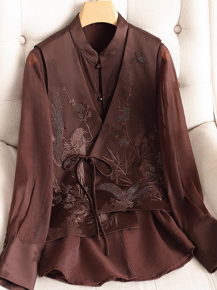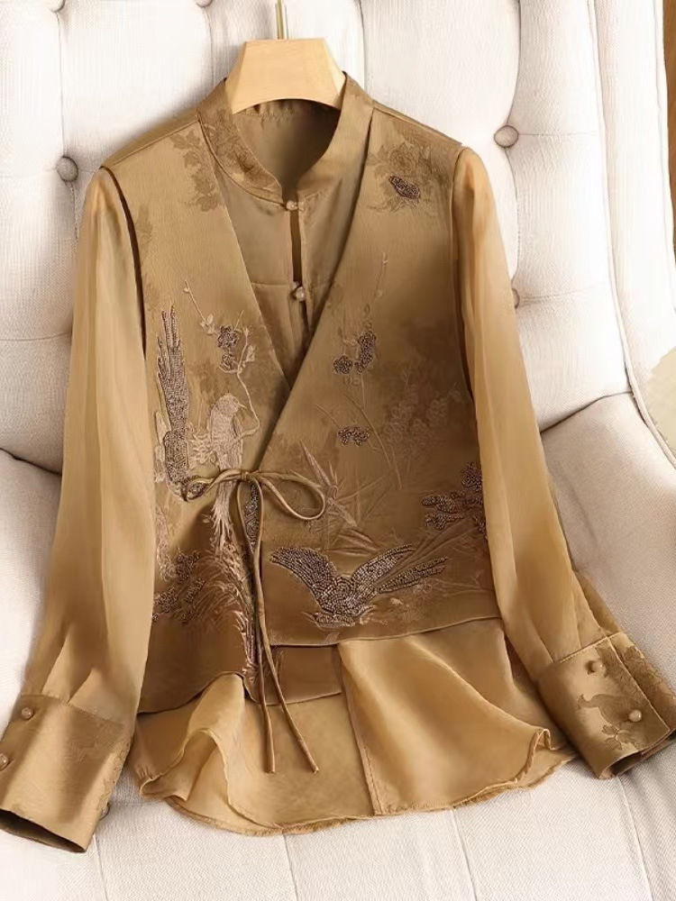 Главная страница > Новый китайский стиль Ancra Red Heavy Industry Вышитая рубашка Cheongsam Женский жилет сшивание поддельные две рубашки