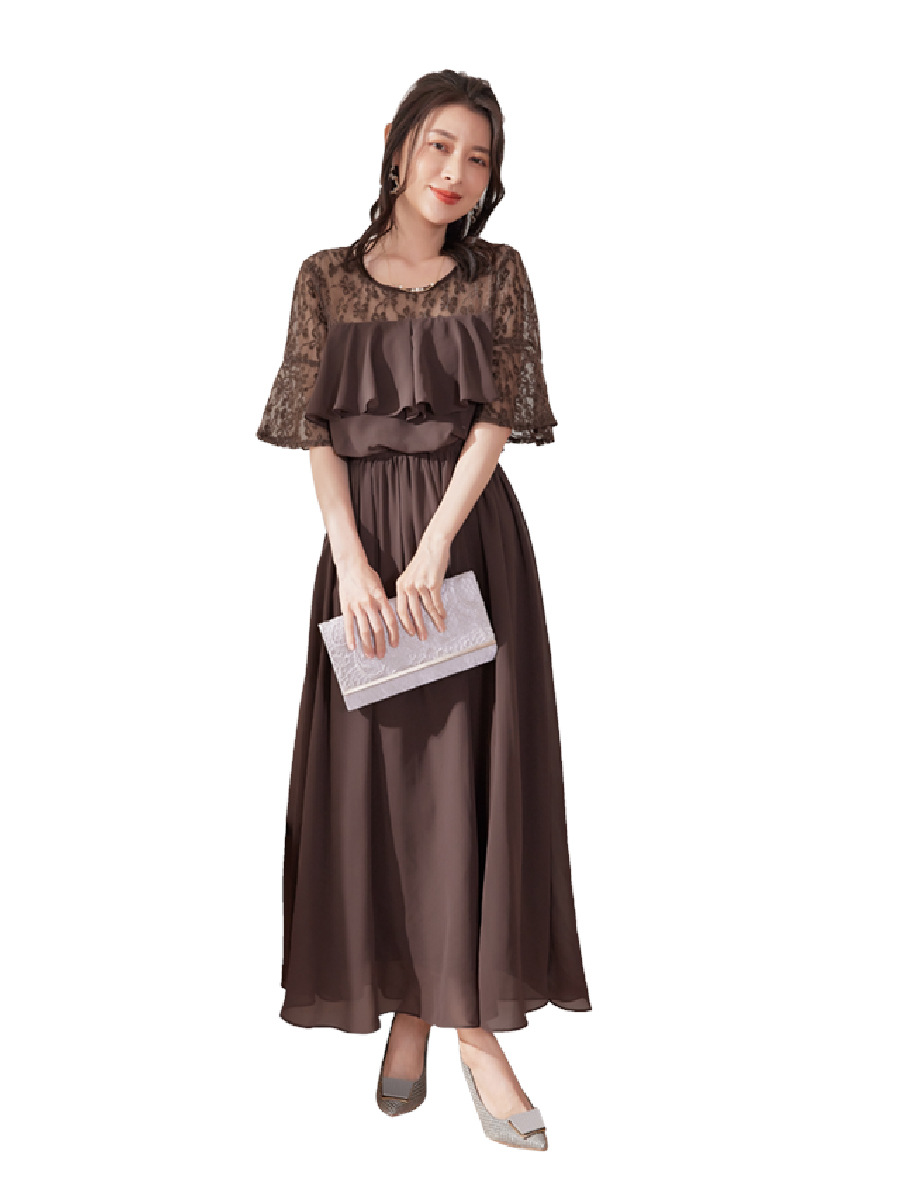 Главная страница > Cuiying японское свежее сладкое кружевное сшивание среднего рукава с круглым вырезом из шифоновой сетки длинное платье 88202