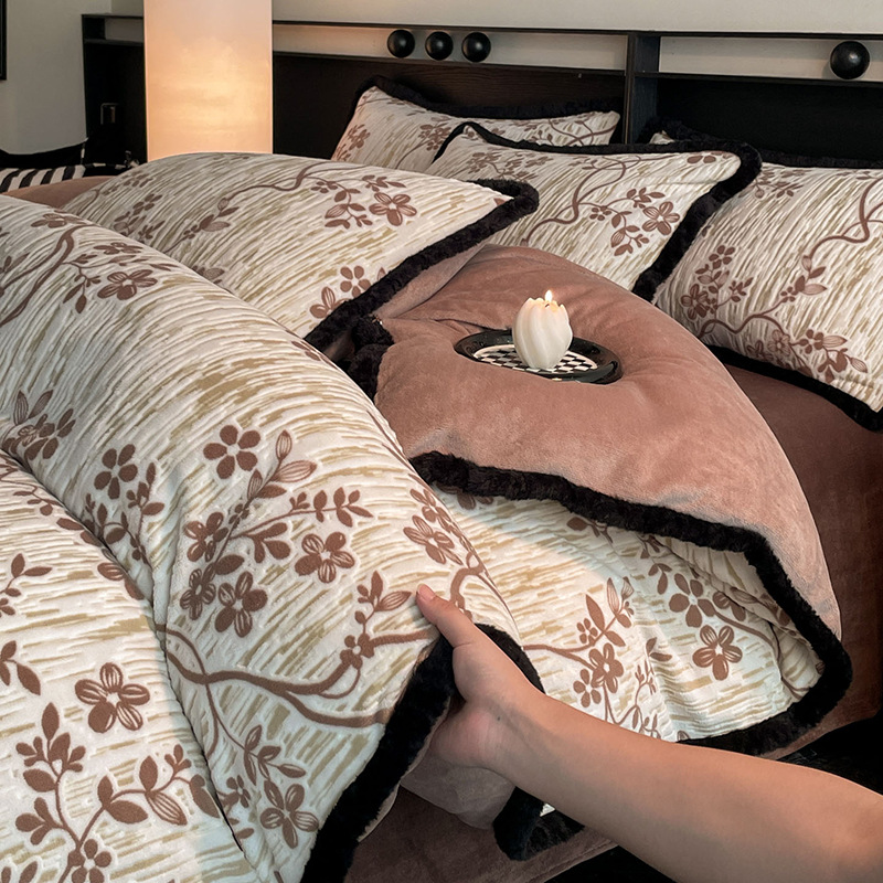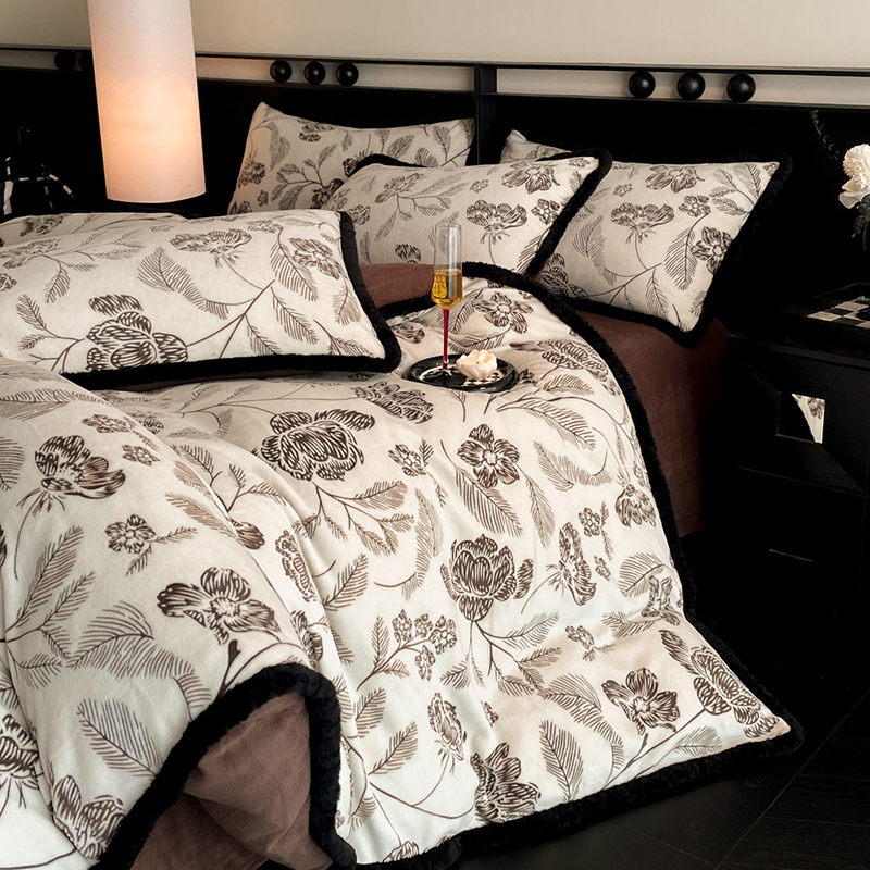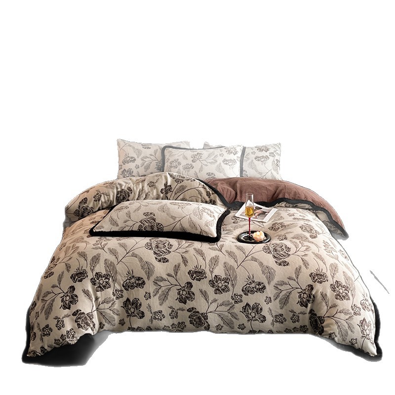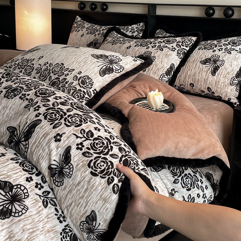 Главная страница > Зимний комплект постельного белья в французском стиле из толстого молочного вельвета с резным узором, черно-золотой, четыре предмета, для студенческого общежития
