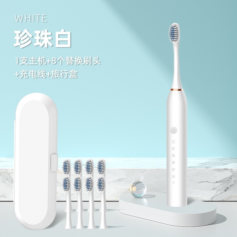 Простая белая модель зарядки через USB [8 щеток + дорожная коробка] Срок службы 60 дней, 6 передач