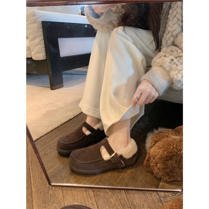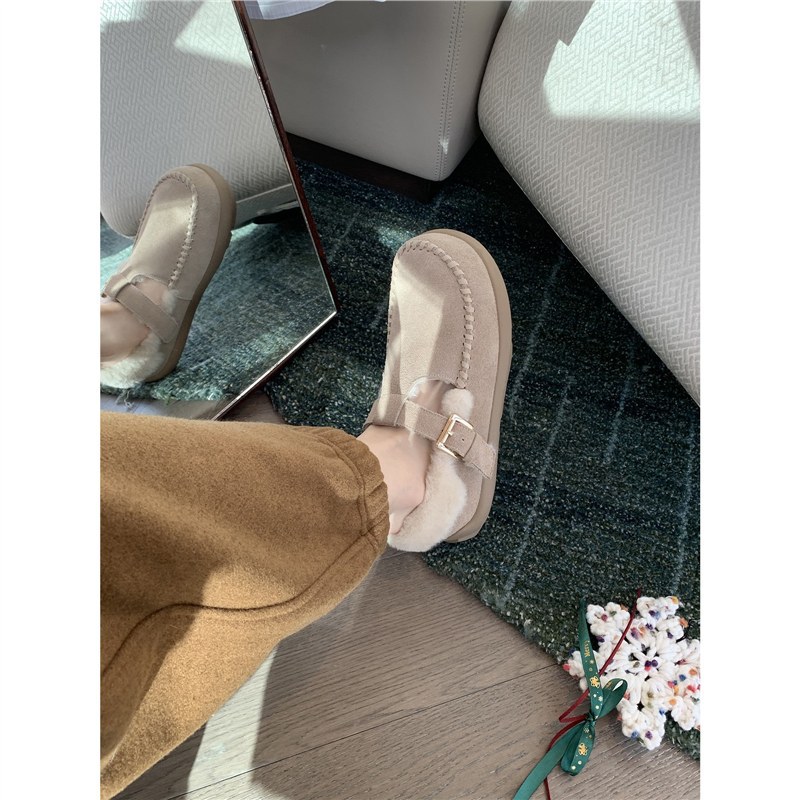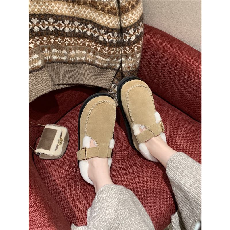Главная страница > Grape Mom Studiolee Новые ретро-лоферы без шнуровки с круглым носком Теплые шерстяные туфли Birkenstock для женщин осенью и зимой.