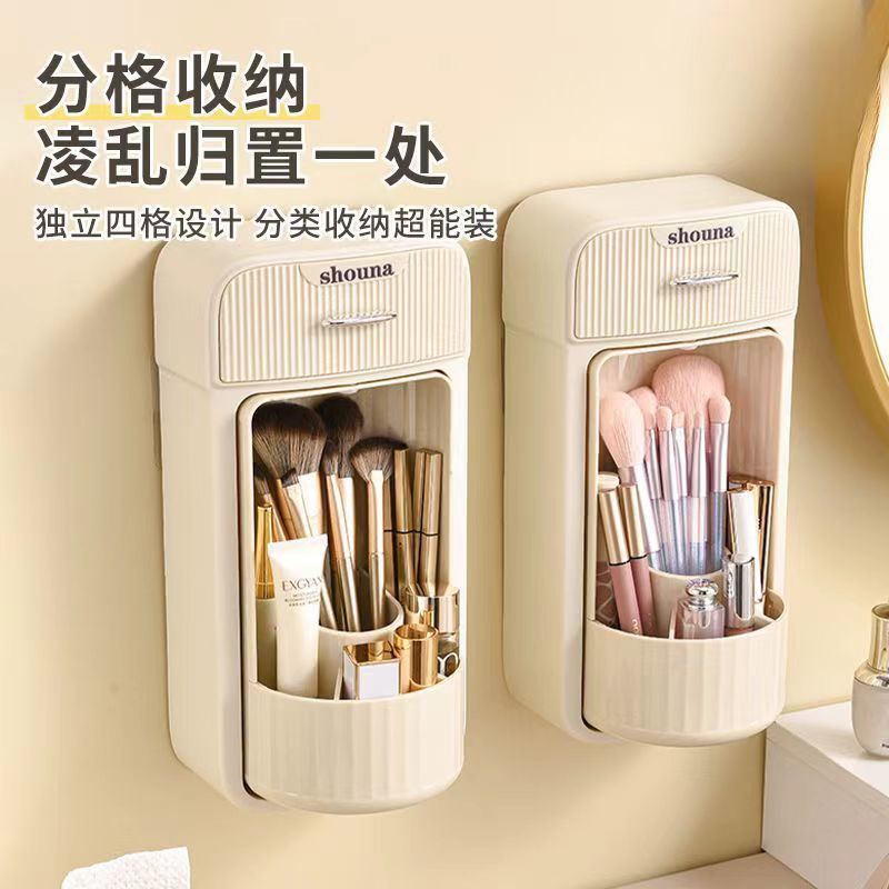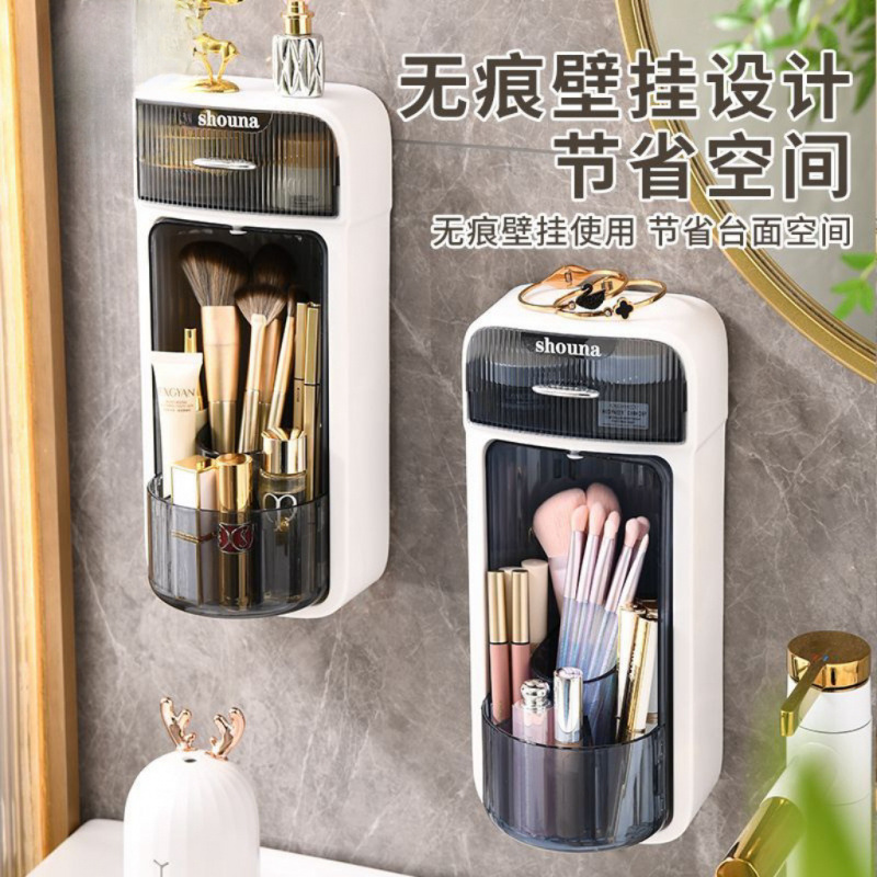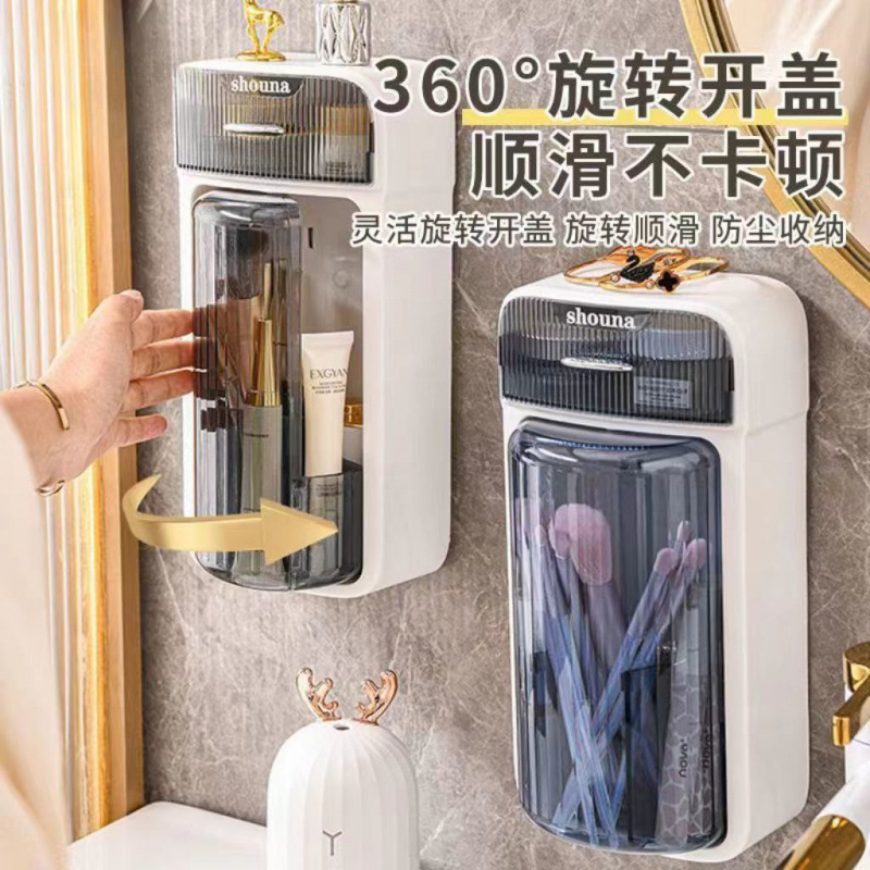Настенная косметическая коробка для хранения косметической щетки для хранения Кнопка для хранения Студенческое общежитие большой емкости пылезащитная крышка вращающаяся коробка для обработки