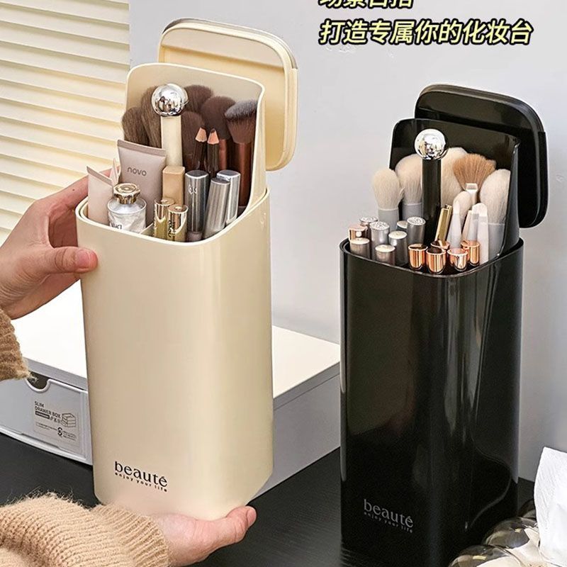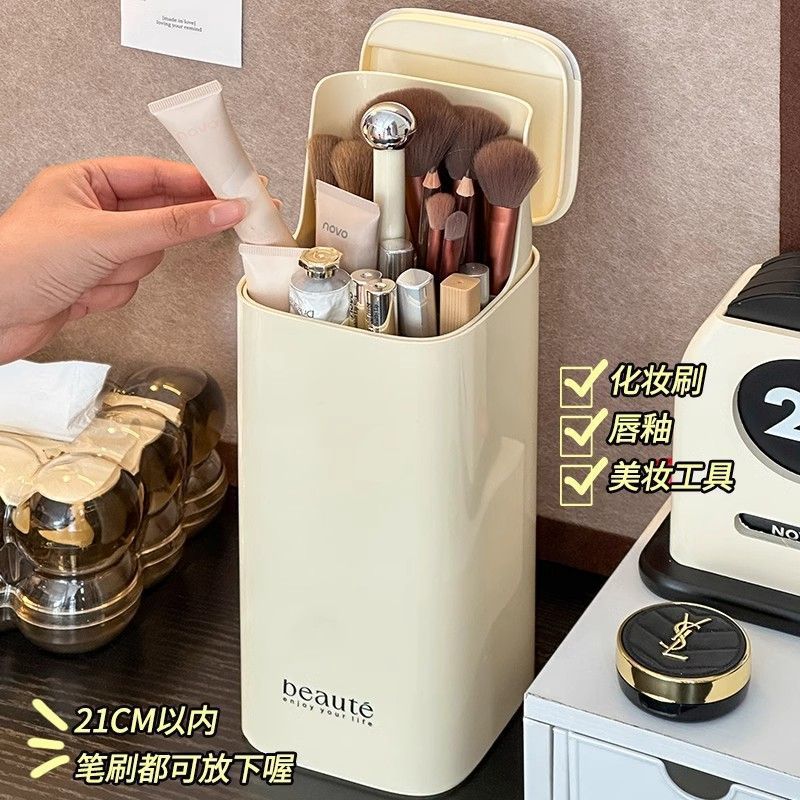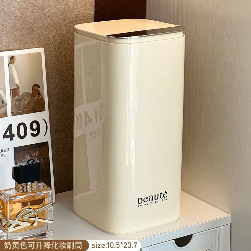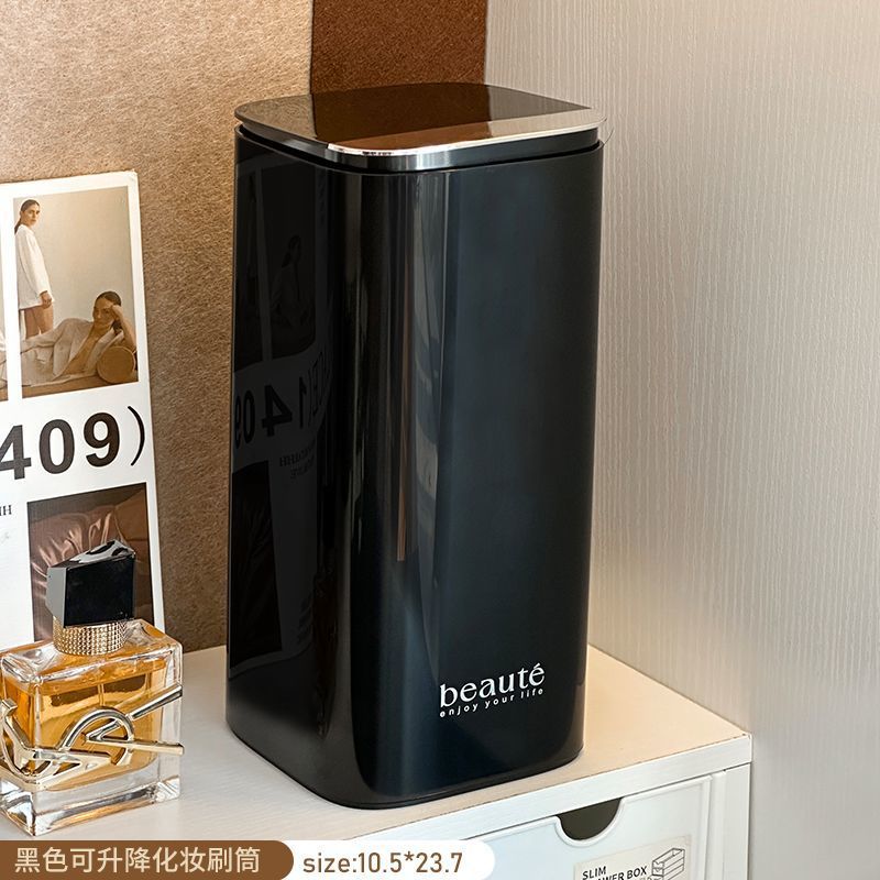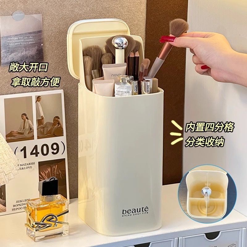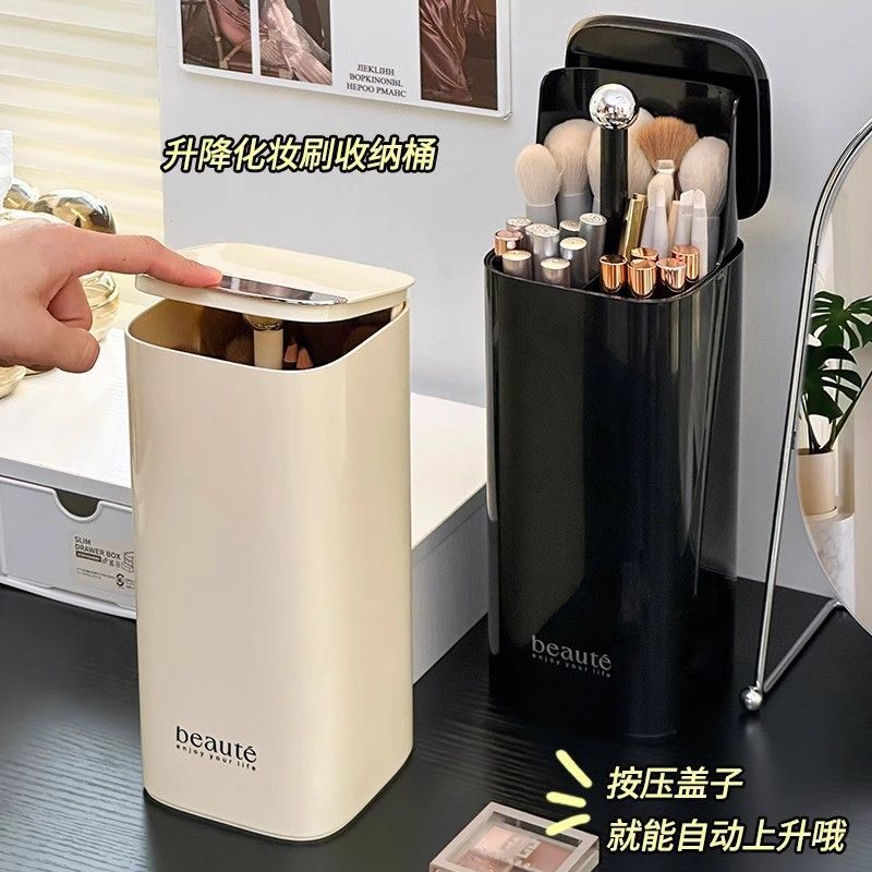 Главная страница > Ящик для хранения косметики, автоматическое подъемное устройство, пылезащитный ящик для хранения кистей для макияжа с четырьмя отделениями, настольный туалетный столик